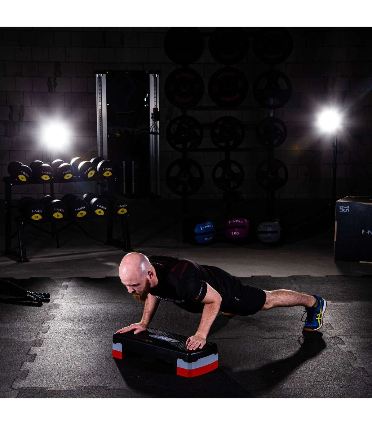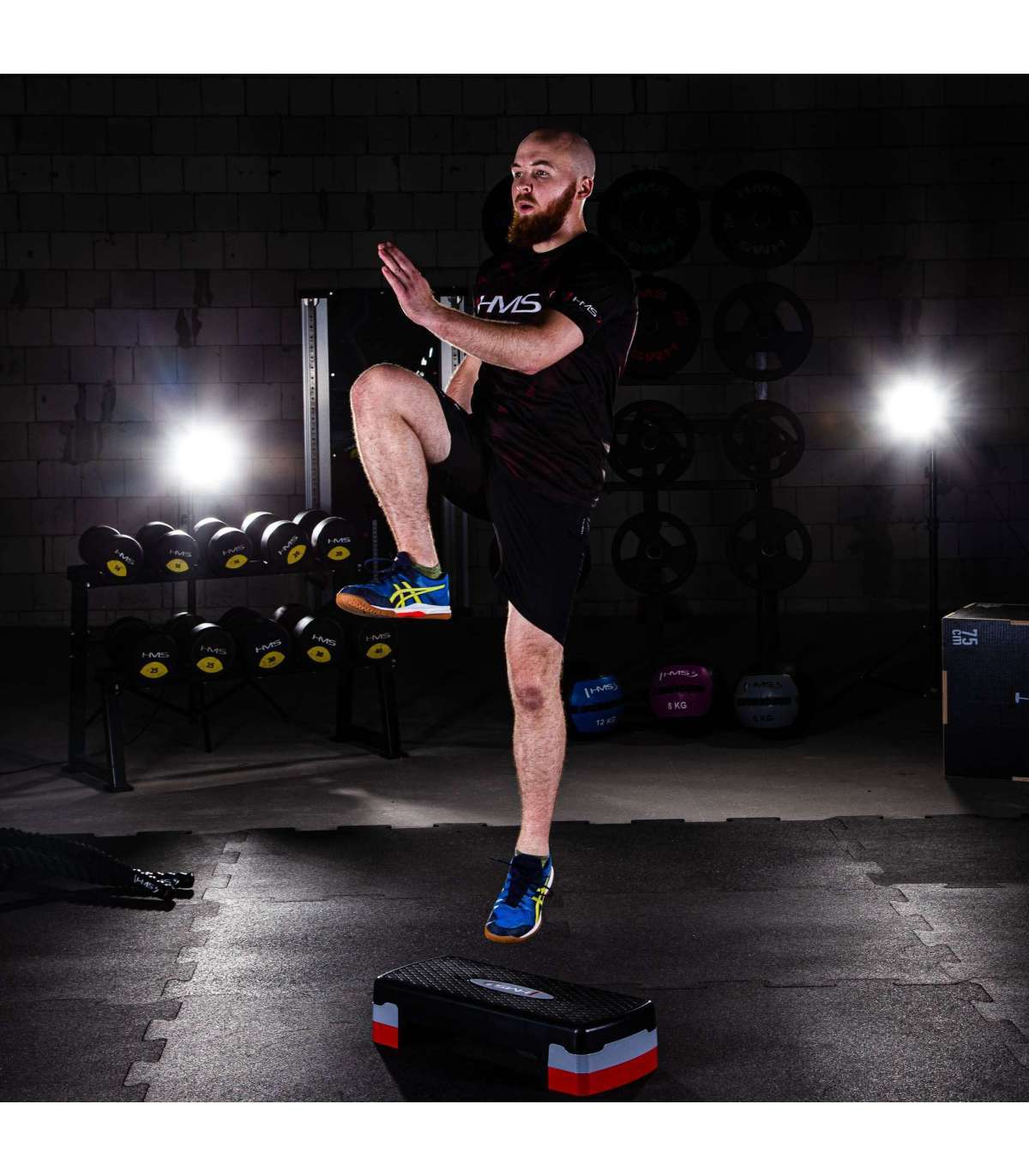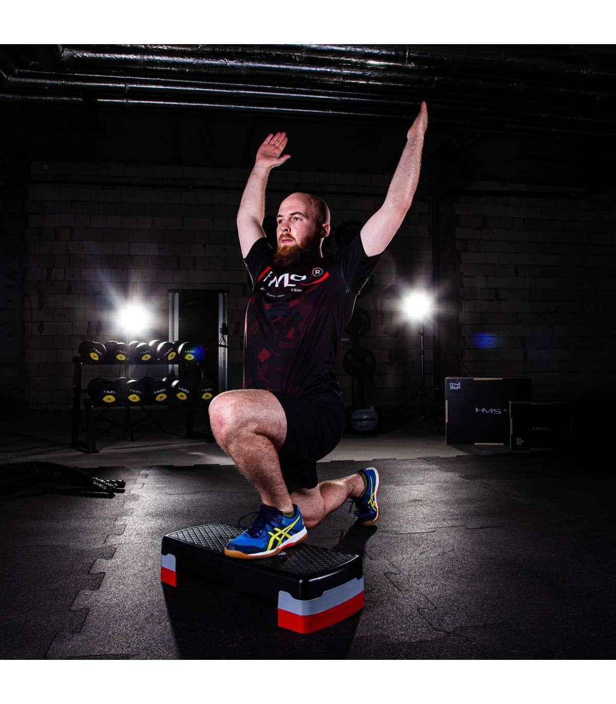 AS003 HMS aerobic step is intended for fitness exercises and aerobics. It has a very solid construction. It is made of lightweight plastic, which ensures comfort, safety and long term use. Rubber pads prevent from any unwanted product movements during exercising.Specification:Material: plasticLength: 68 cmWidth: 28 cmHeight: 10 / 15 cmNon-slip surface: 62,5 x 23,5 cmTwo-stage height adjustmentColour: black-grey-redStep weight: 2.5 kgMaximum load: 200 kgRemarks:Not for commercial use24 months warrantyImporter: Abisal Ltd. | Poland | 41-807 Zabrze | Pyskowicka Street 17 | e-mail: abisal@abisal.plAbisal Ltd.. declares that the products sold by the company are safe and meet the requirements contained in the Act on General Product Safety of December 12, 2003. (Journal of Laws of December 31, 2003)