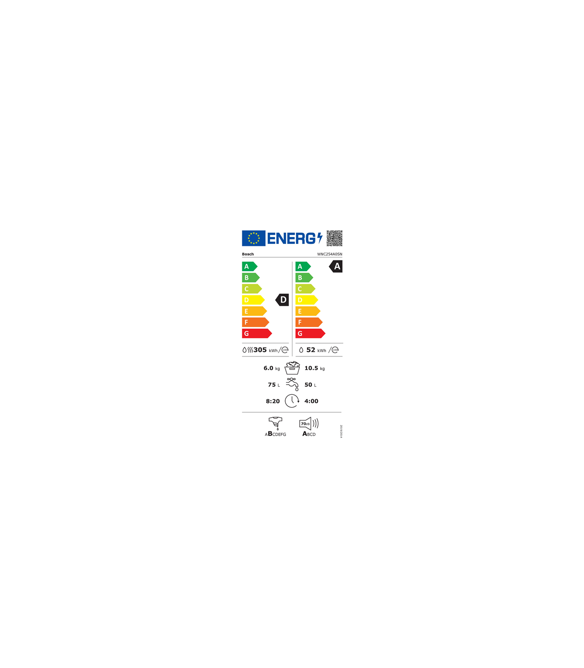 Bosch | Washing Machine with Dryer | WNC254A0SN | Energy efficiency class D | Front loading | Washing capacity 10.5 kg | 1400 RPM | Depth 62 cm | Width 60 cm | Display | LED | Drying system | Drying capacity 6 kg | Steam function | White