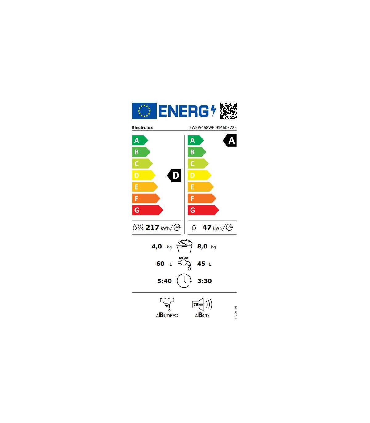 - Energy efficiency class (Washing + Drying)