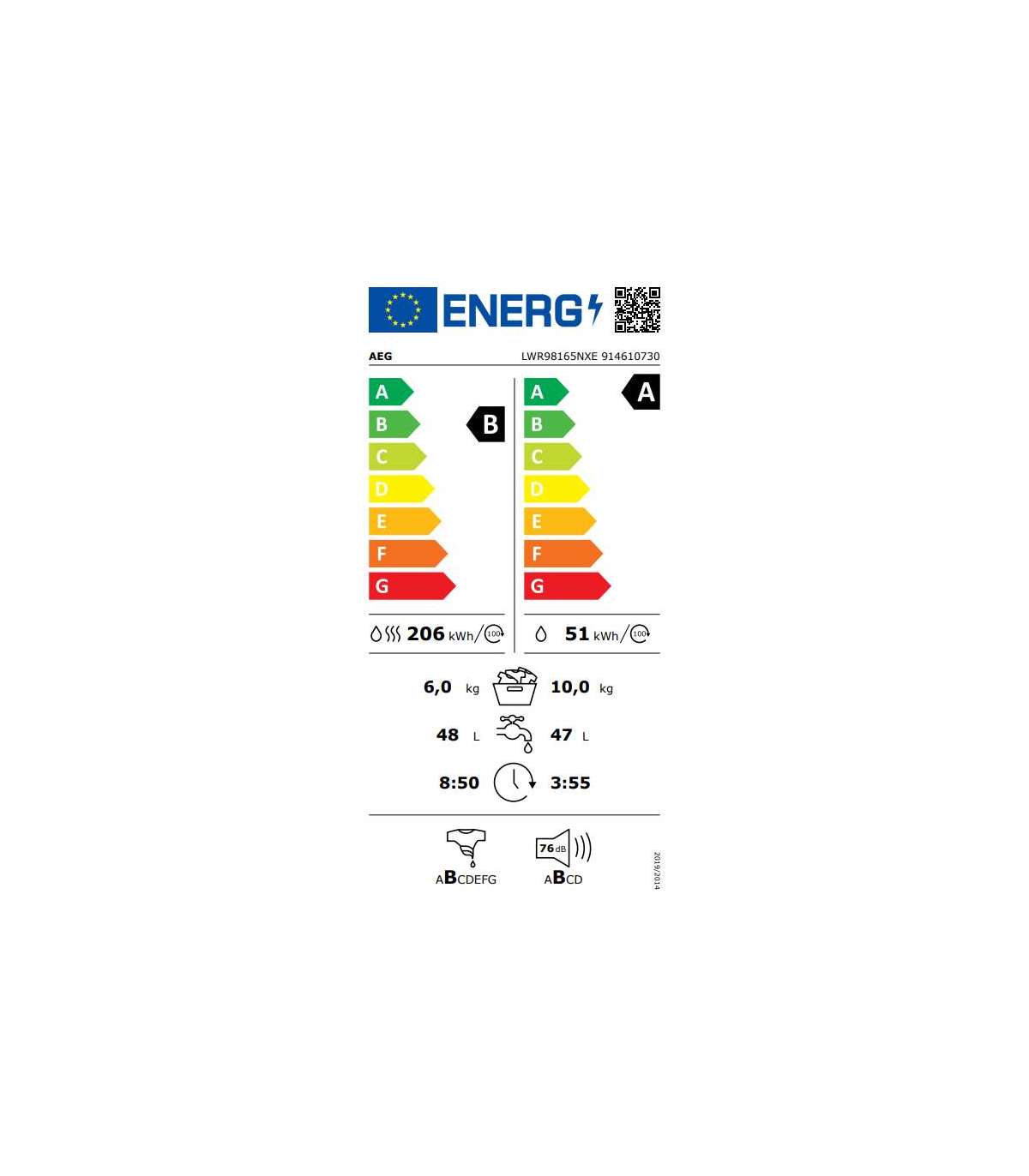 - Energy efficiency class (Washing + Drying)