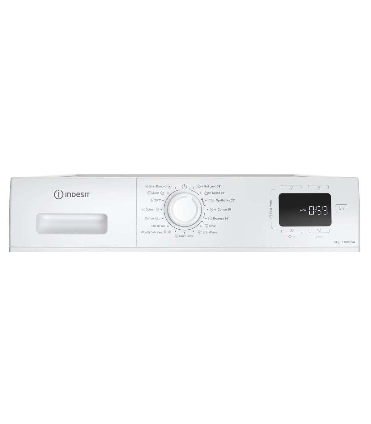 Programs: Cotton 40-90°C, Eco 40-60, Full load 60°C, Mixed 59' 40°C, Synthetics 40°C, Cotton fast 30-90°C, Express 14' 30°C, drum clean 90°C, Wool & Delicates 40°C, Cotton with Pre-wash, 20°C, Mixed 40°C, Stain removal 60°C