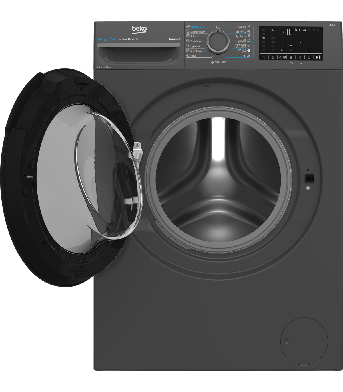 Saves up to 35% energy in all programs, not just eco programs! In addition to the Eco 40-60 program, cotton, synthetics, "Xpress/Super Express", delicate fabrics, mixed laundry, hand wash, woolen, dark laundry and outdoor/sports programs use up to 35% less energy compared to the "Beko WTV 9636 XSO" washing machine, without degrading the washing result. . "EnergySpin" is also available in "Coldwash", 20°C, "Drum Clean" and downloaded programs.