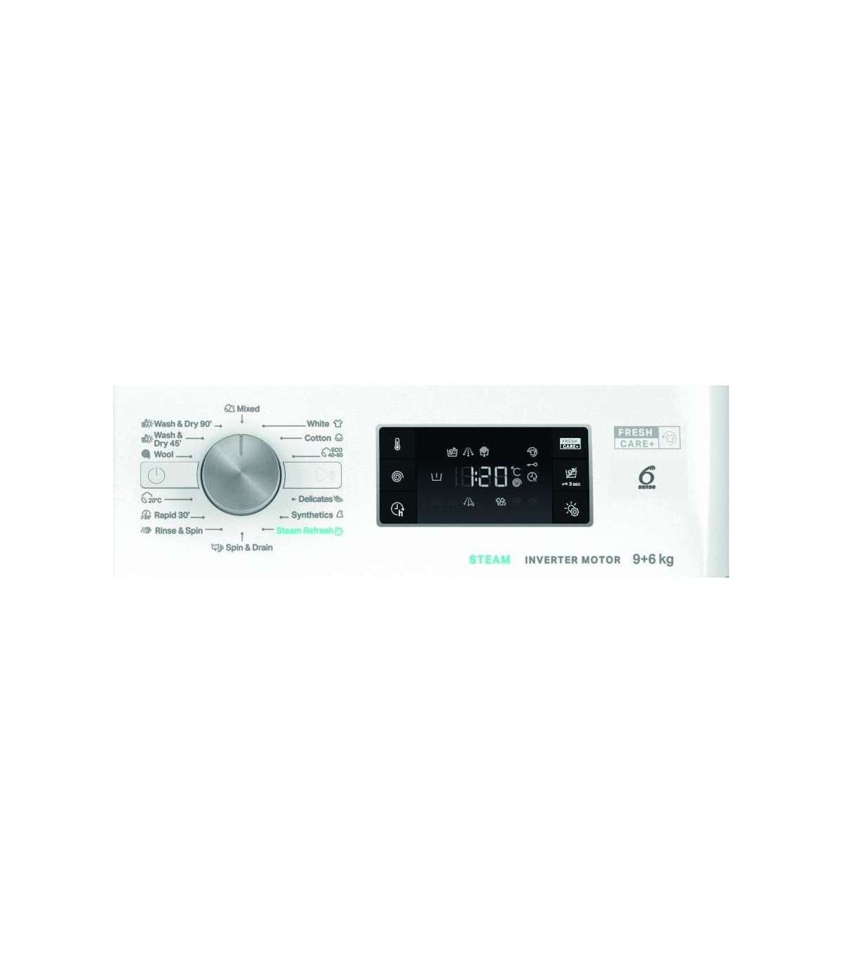 Washing machine dryer with 6th Sense technology and a refreshing steam function!