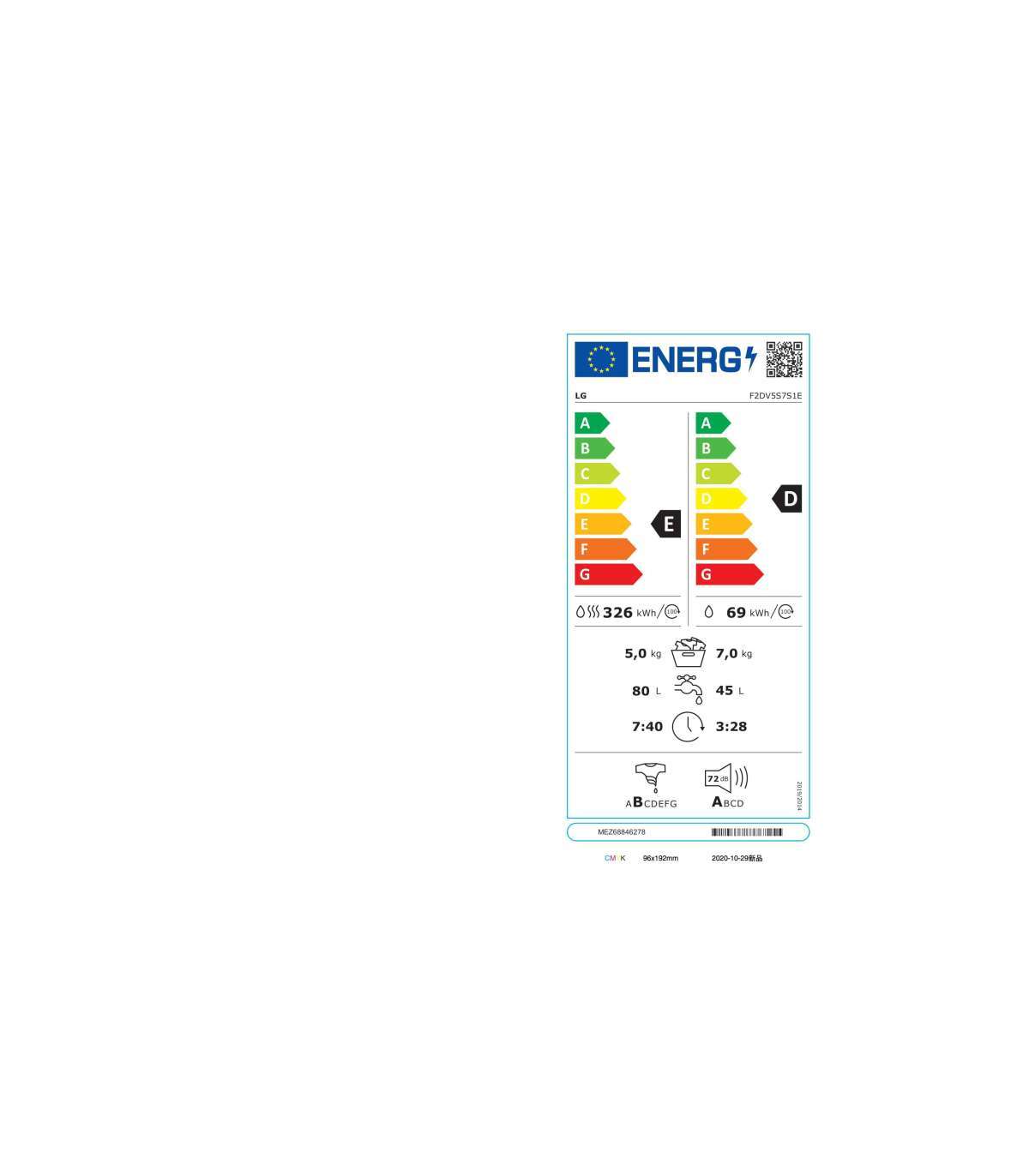 LG Washing Machine With Dryer F2DV5S7S1E Energy efficiency class D Front loading Washing capacity 7 kg 1200