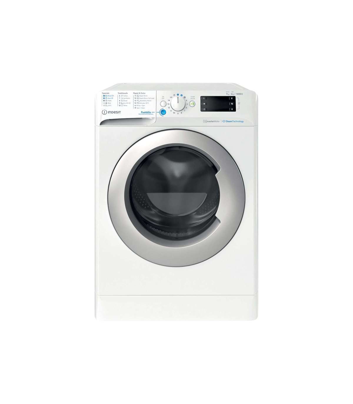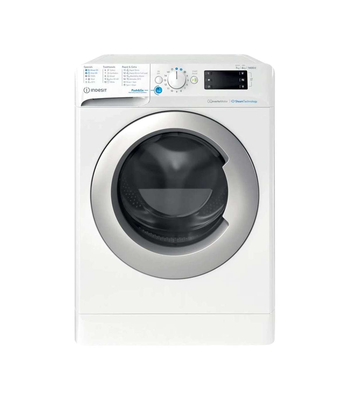 INDESIT | Washing machine with Dryer | BDE 76435 WSV EE | Energy efficiency class B/D | Front loading | Washing capacity 7 kg | 1351 RPM | Depth 54 cm | Width 60 cm | LCD | Drying system | Drying capacity 6 kg | Steam function | White