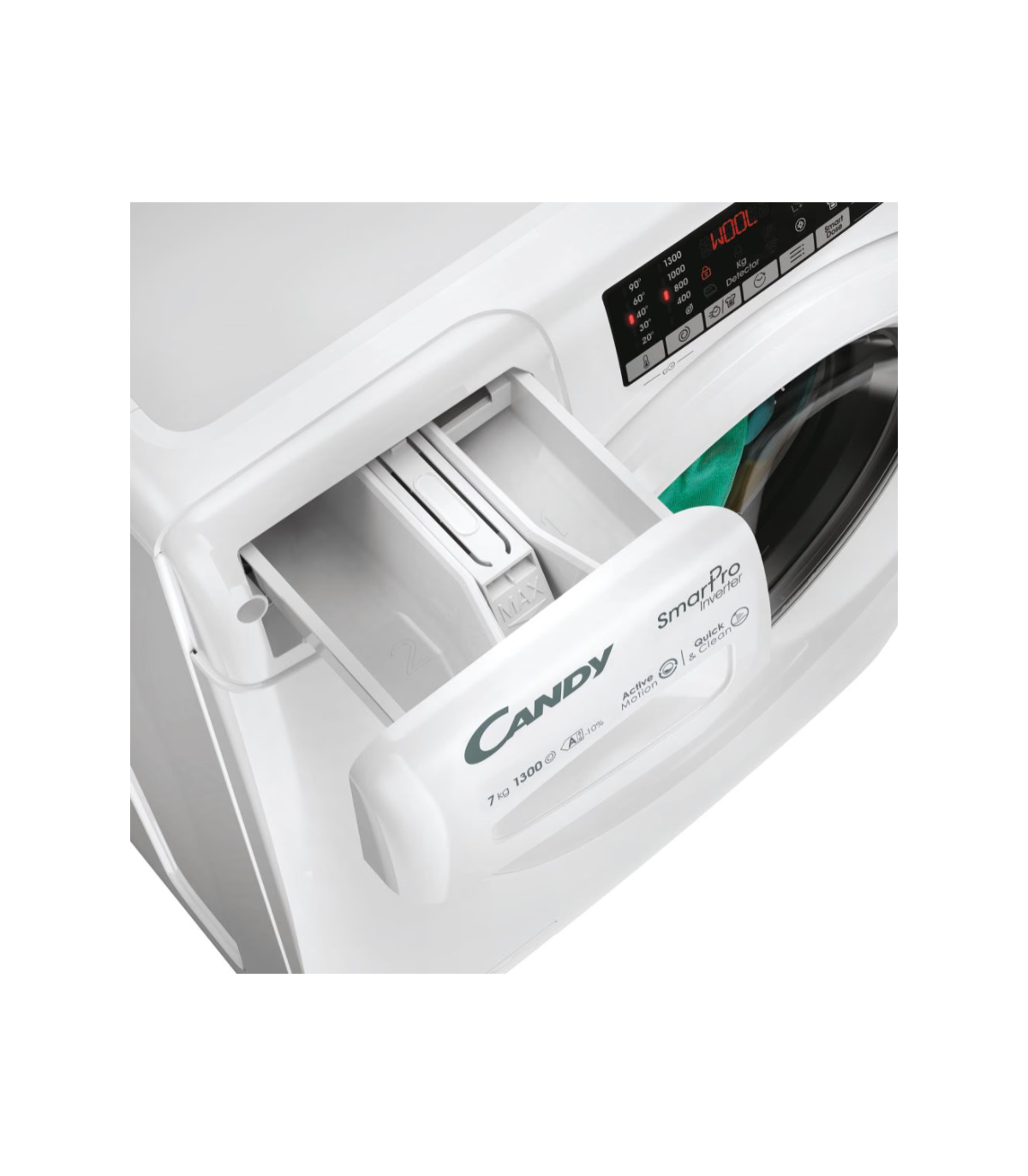 Candy Washing machine | CO4 374TWM6/1-S | Energy efficiency class A | Front loading | Washing capacity 7 kg | 1300 RPM | Depth 45.4 cm | Width 60 cm | Display | 4-digit | Direct drive | Wi-Fi | White