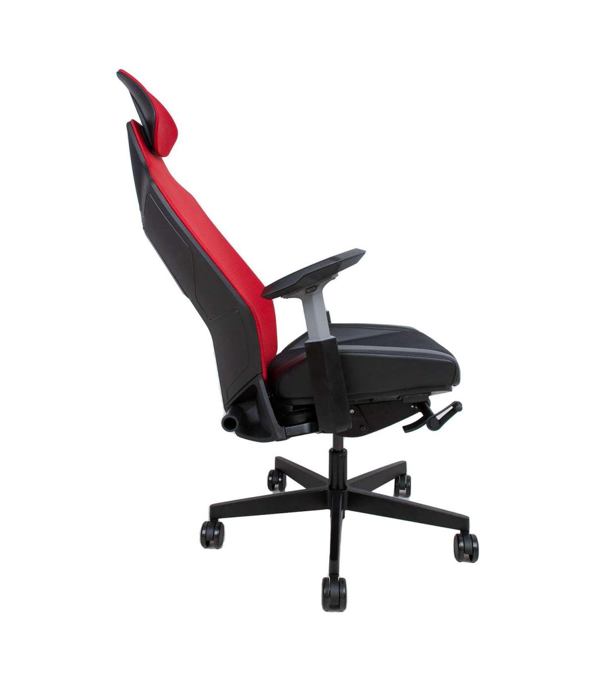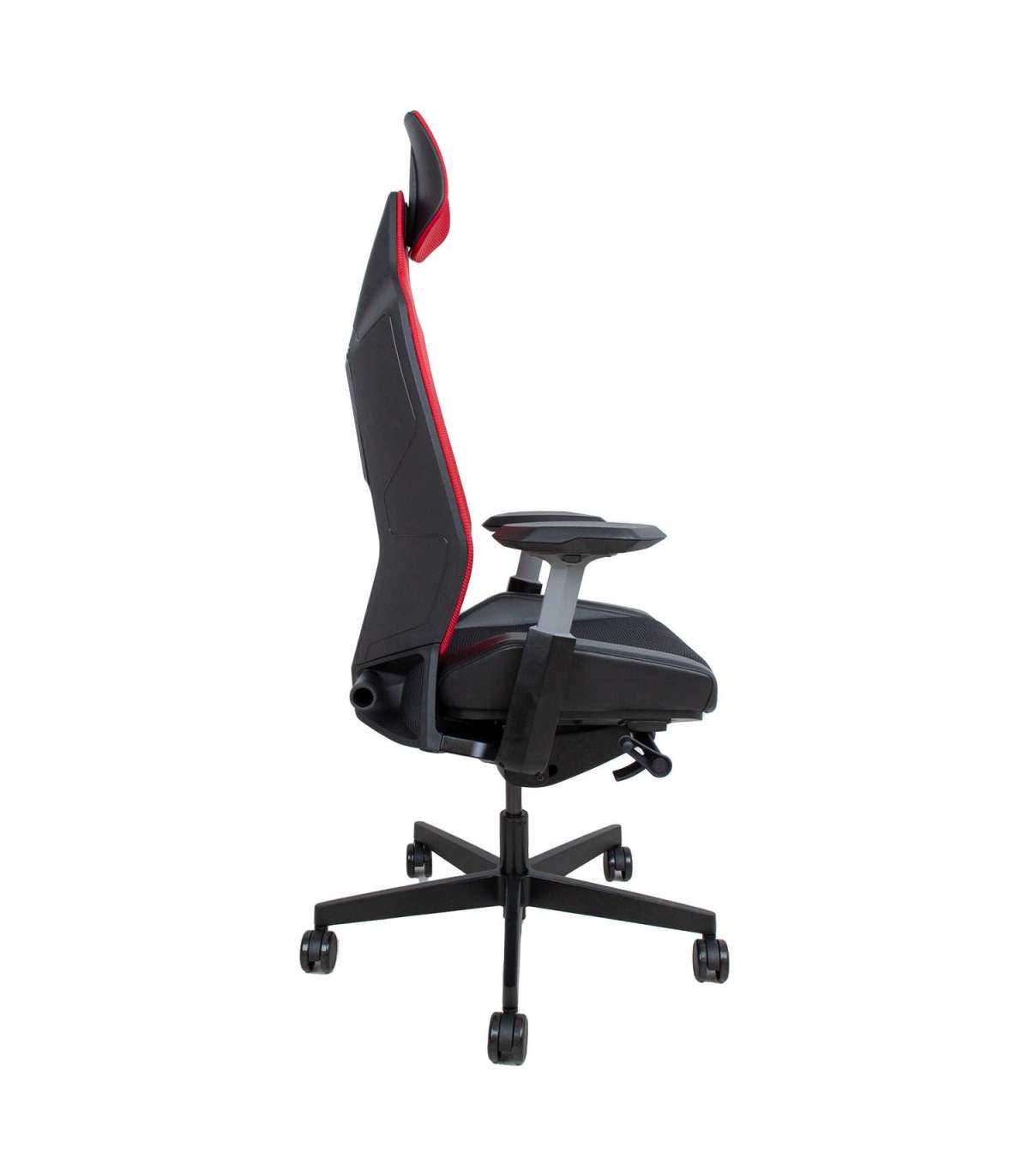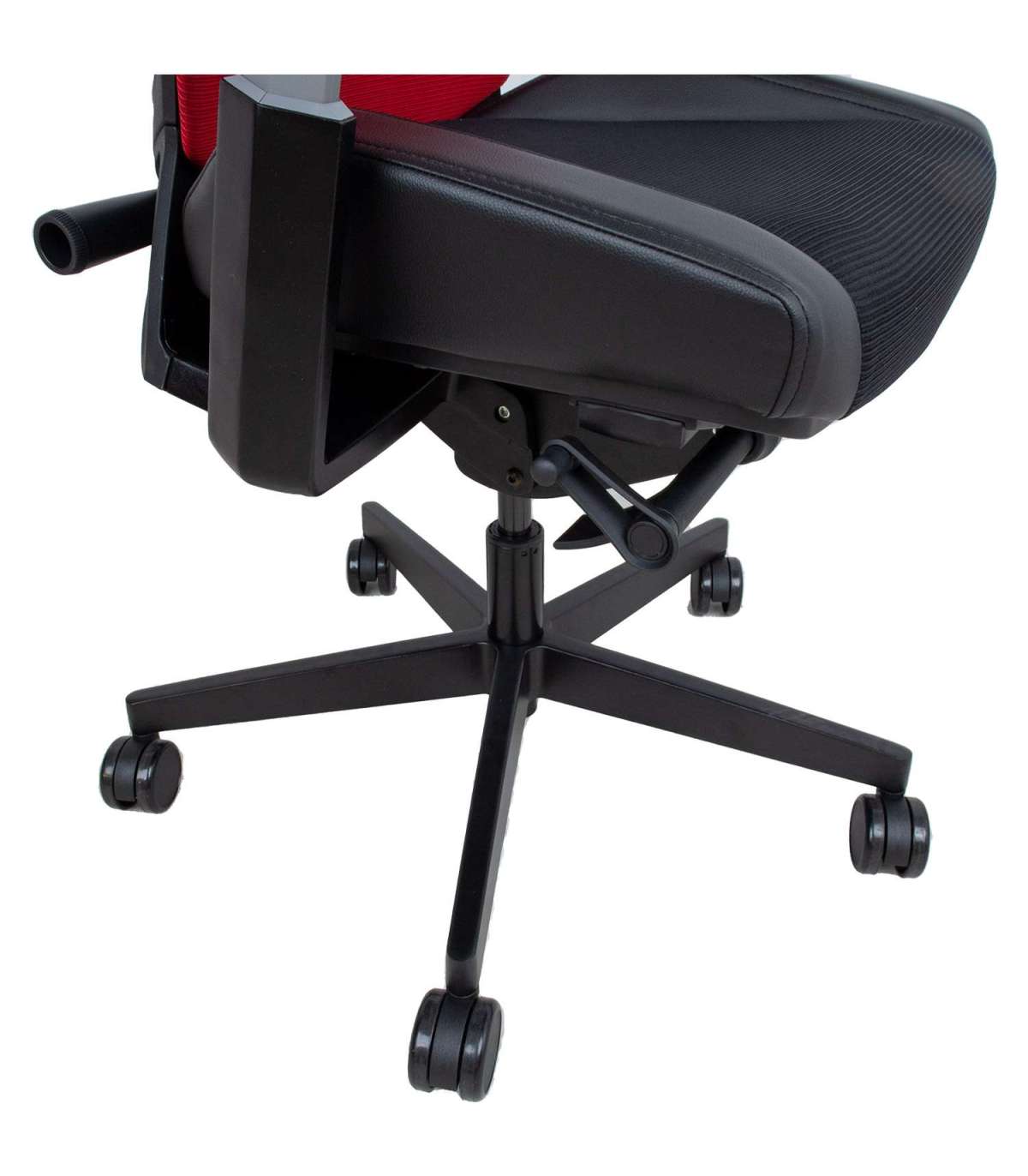 Mänguritool RONIN must/punane. Mängu võitmiseks vajad parimat varustust! Mugav ja funktsionaalne tool aitab säilitada keskendumisvõime ja välkkiire reaktsiooni pikkadeks tundideks. Tooli seljatoe väliskülg on vormitud mustast plastikust, mille keskel on ventilatsiooniava. Sandwich polüestervõrkkangaga kaetud seljatugi tagab suurepärase hingavuse. Nimmetugi on reguleeritav istme taga oleva pöördkäepideme abil. Peatoe kõrgus on reguleeritav. Sportautost inspireeritud istmepadi on vormitud polüuretaanvahust ja kaetud sandwich võrkkanga ja kunstnahaga. Istme sügavus on reguleeritav 5cm ulatuses. Tooli laia toetuspinnaga käetugede kate on vormitud tugevast polüuretaanvahust. Fiiberkiuga tugevdatud käetoed on valmistatud hallist polüamiidist ja alusraam survevalu alumiiniumsulamist. Käetugede kõrgus on reguleeritav 10cm ja laius 5cm ulatuses. Toolil on sünkroonmehhanism. Seljatoe kaldenurk on lukustatav 10-positsioonis ja kaldepinge tugevus reguleeritav. Istme kõrgus on reguleeritav gaasamordi abil. Tooli 5-haruline jalarist on valmistatud valualumiiniumist ja viimistletud musta epoksiidpulbervärviga. Toolil on 65mm põrandat säästvad nailonrattad. Tooli üldmõõdud on 71x70xH119-139cm. Istme laius 53cm, istme sügavus 42-47cm, istme kõrgus 44-54cm. Kaalupiirang 120kg.