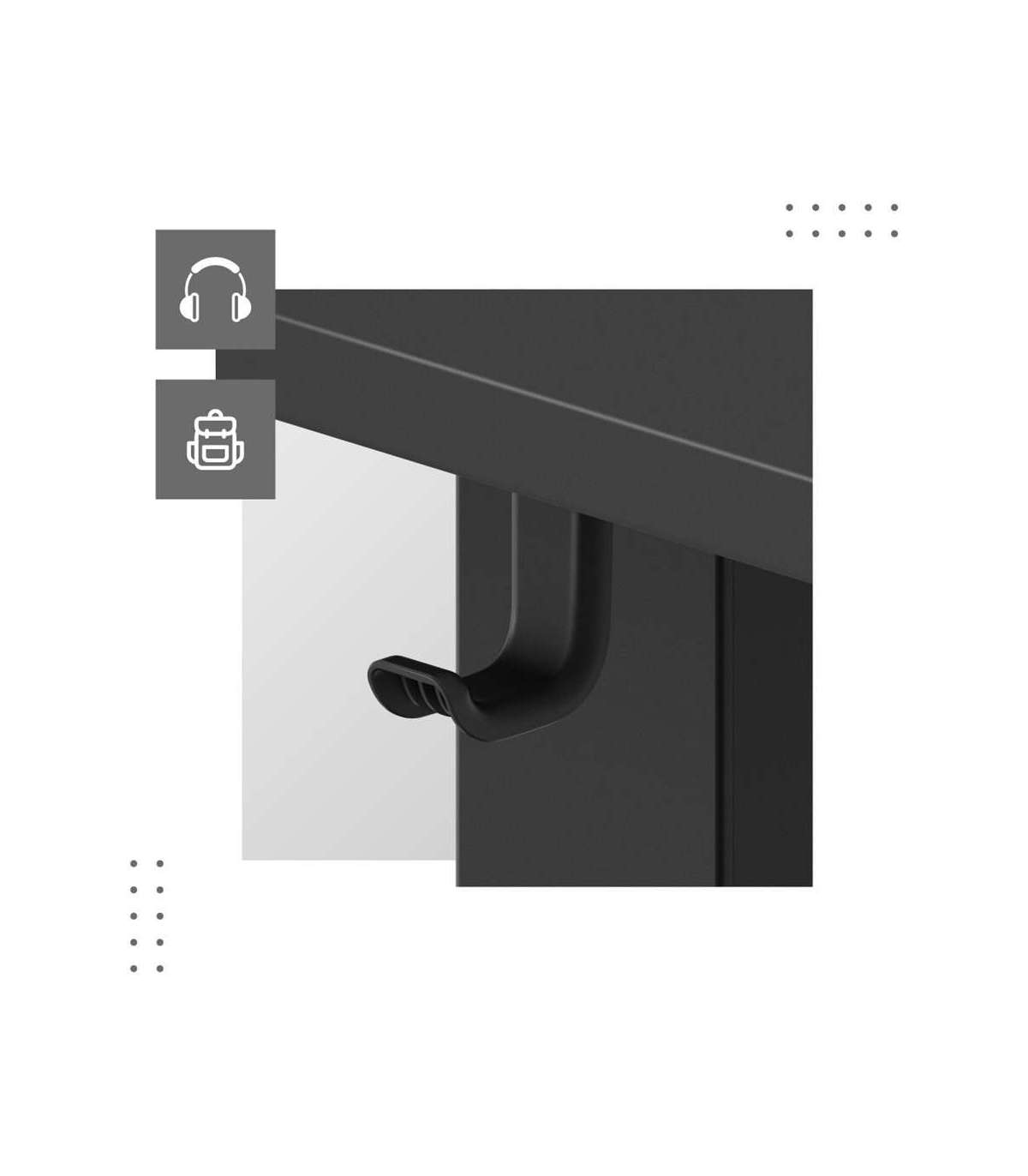 - Built-in headphone hook