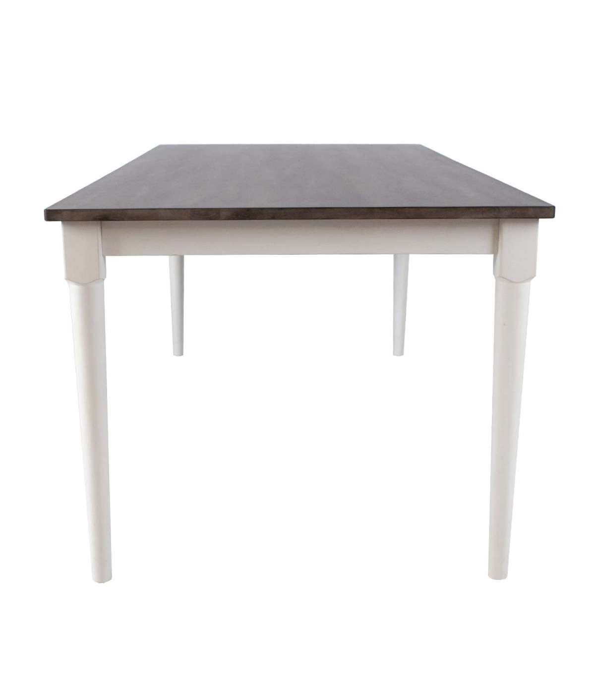 Söögilaud JANELLE 183x91xH75cm, hall/valge. Lauaplaat: halli värviga viimistletud mööbliplaat. Laua jalad ja raam on valmistatud kummipuust ja värvitud valgeks.