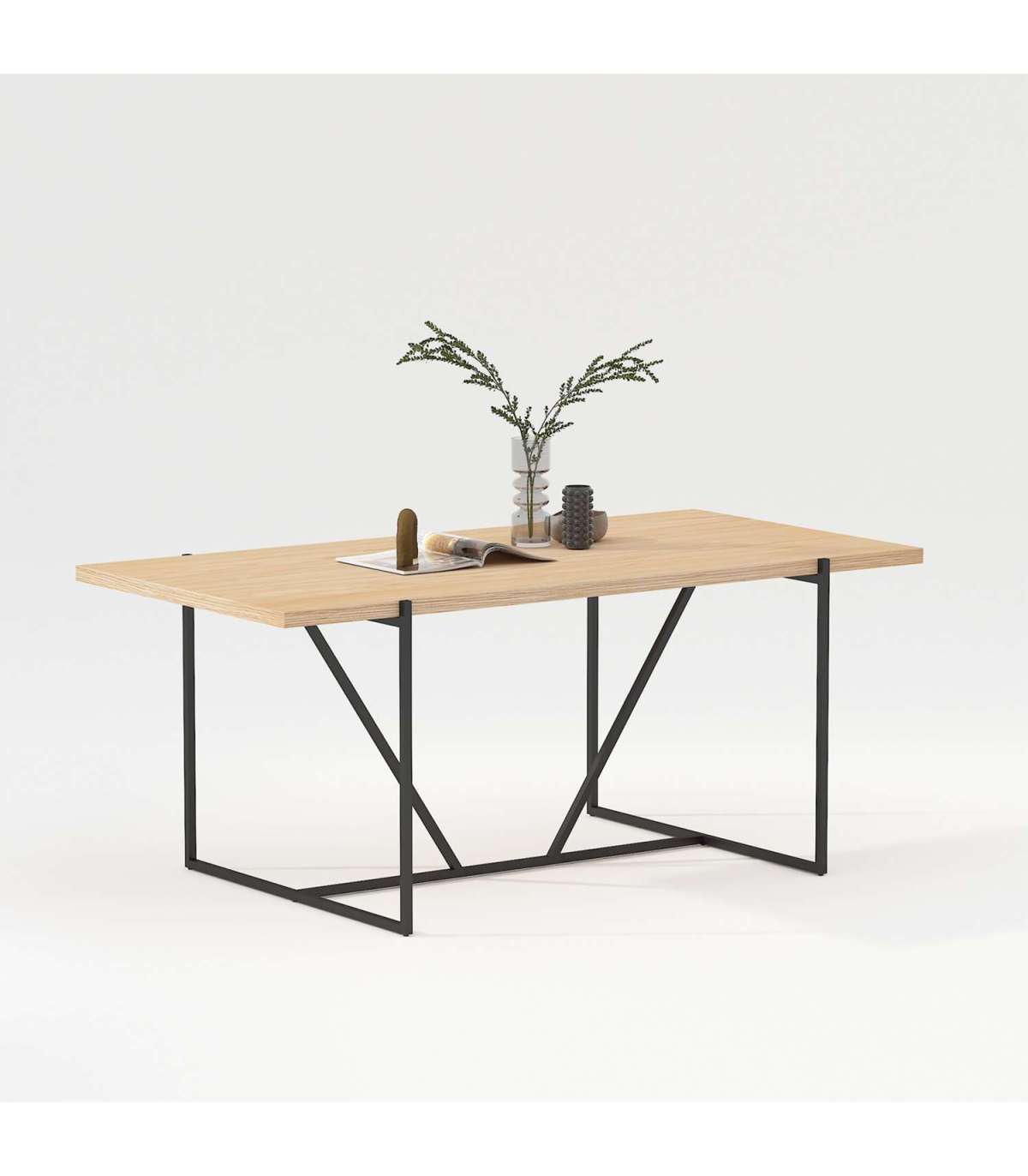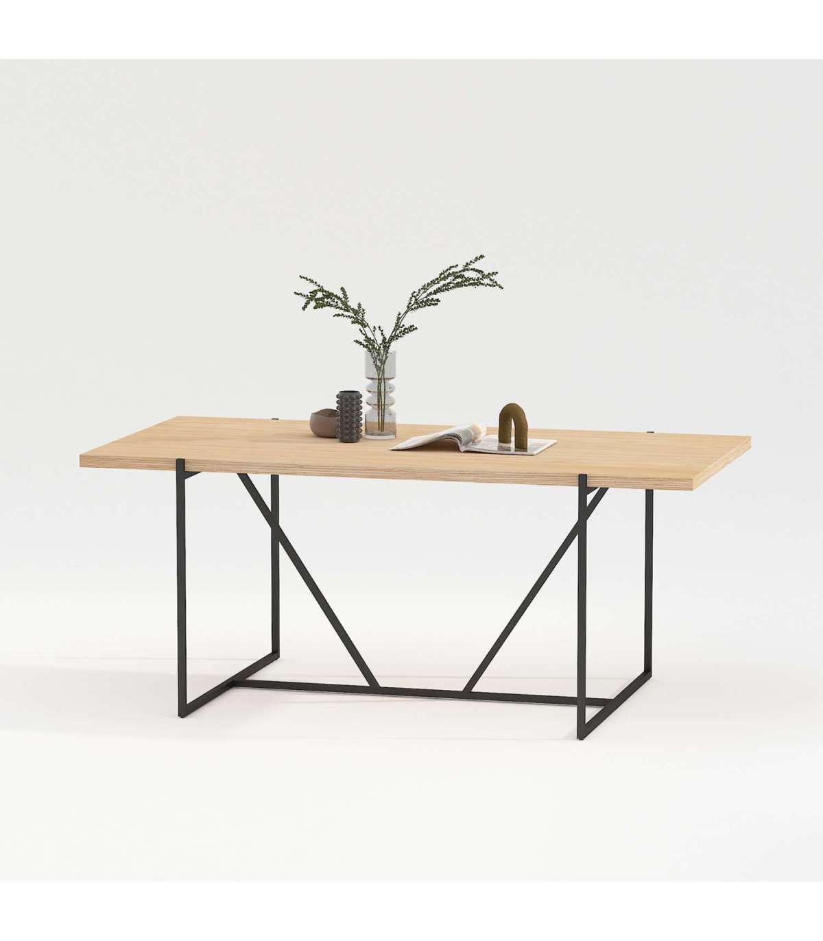 Söögilaud CINDY 180x90xH75cm, melamiin tamm. Lauplaat: hele tammedekooriga melamiinplaat. Laua jalad ja alusraam on valmistatud metallist ja viimistletud musta pulbervärviga.