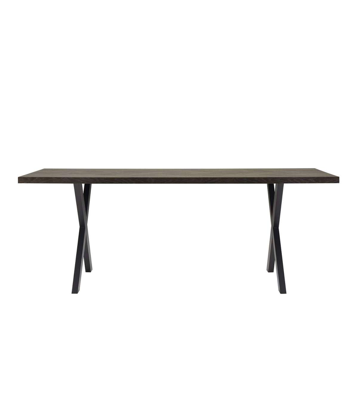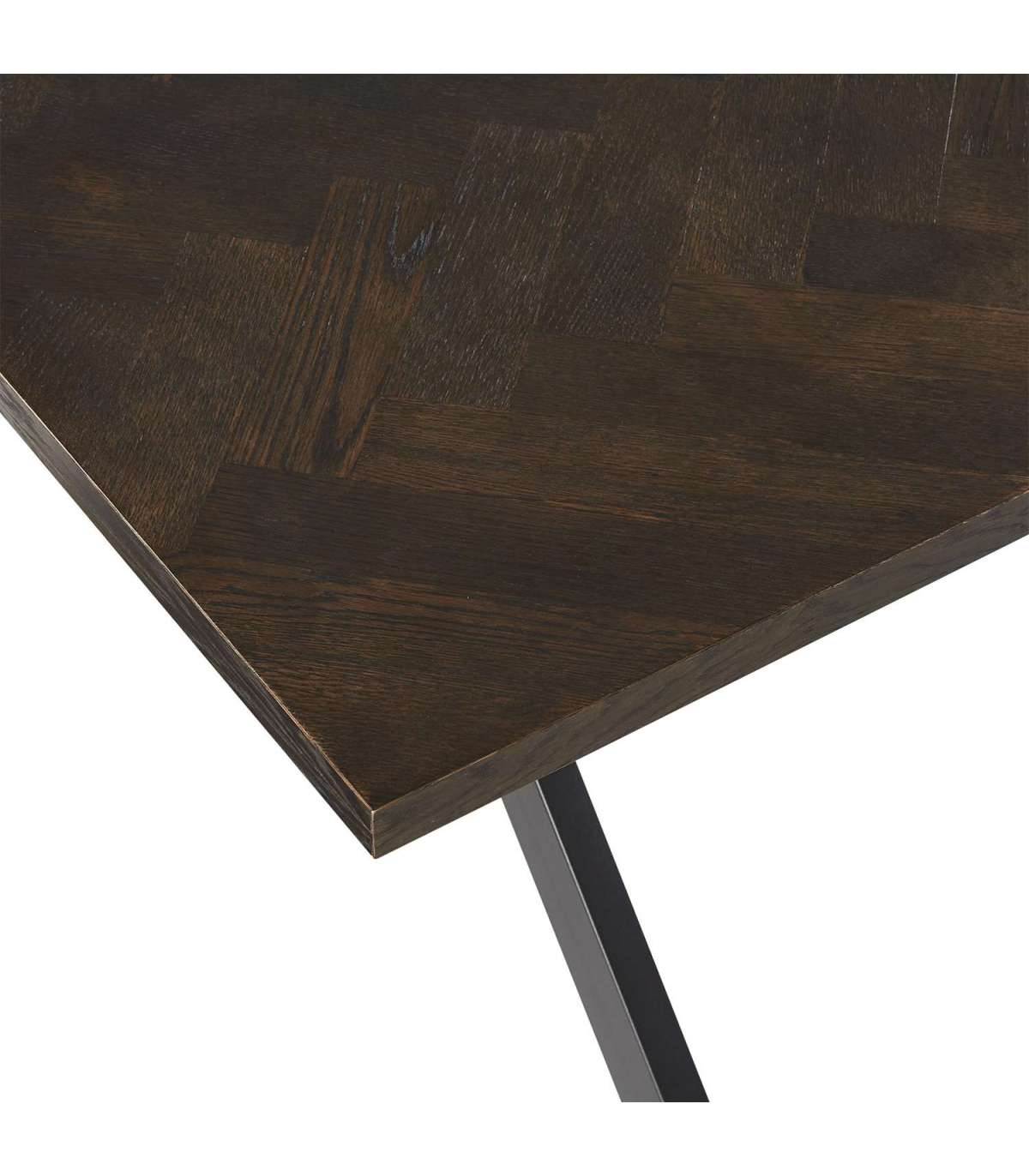 Söögilaud ROWAN 200x90xH75cm, kalasaba suitsutamm. Lauaplaat: kalasaba mustrisse laotud naturaalse tammespooniga mööbliplaat. Lauaplaat on viimistletud tumeda lakiga. Laua ristjalad on valmistatud metallist ja viimistletud musta pulbervärviga.