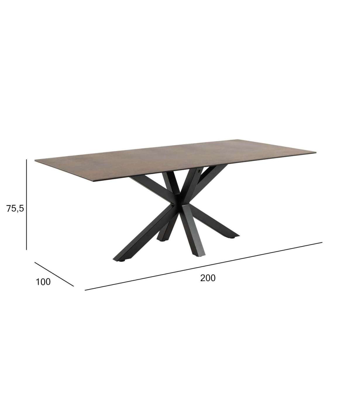 Söögilaudade puhul on praktilisus ja disain võrdselt olulised. See laud on nii funktsionaalne kui ka esteetiliselt silmapaistev. Lauaplaat valmistatud roostepruuni tooni keraamikast. Moodsa väilimuse kõrval on laud kuuma- ja kriimustuskindel ning nõuab vähe hooldust. Skulptuurne ristalus sobib ideaalselt laua disainiga. Mõõdud on 200x100xH75,5cm. HOOLDUS: Keraamika on kuuma- ja kriimustuskindel materjal, mis vajab minimaalset hooldust. Kui tekivad plekid, pühkige pind puhtaks kuivaks väänatud kiudlapiga või paberrätikuga. Pinnakahjustuste vältimiseks kasutage klaasialuseid. Alus: Kasutage igapäevaseks puhastamiseks seebiveest kuivaks väänatud lappi. Rooste vältimiseks pühkige pind kuivaks. Ärge hõõruge pinda kõvade esemetega.