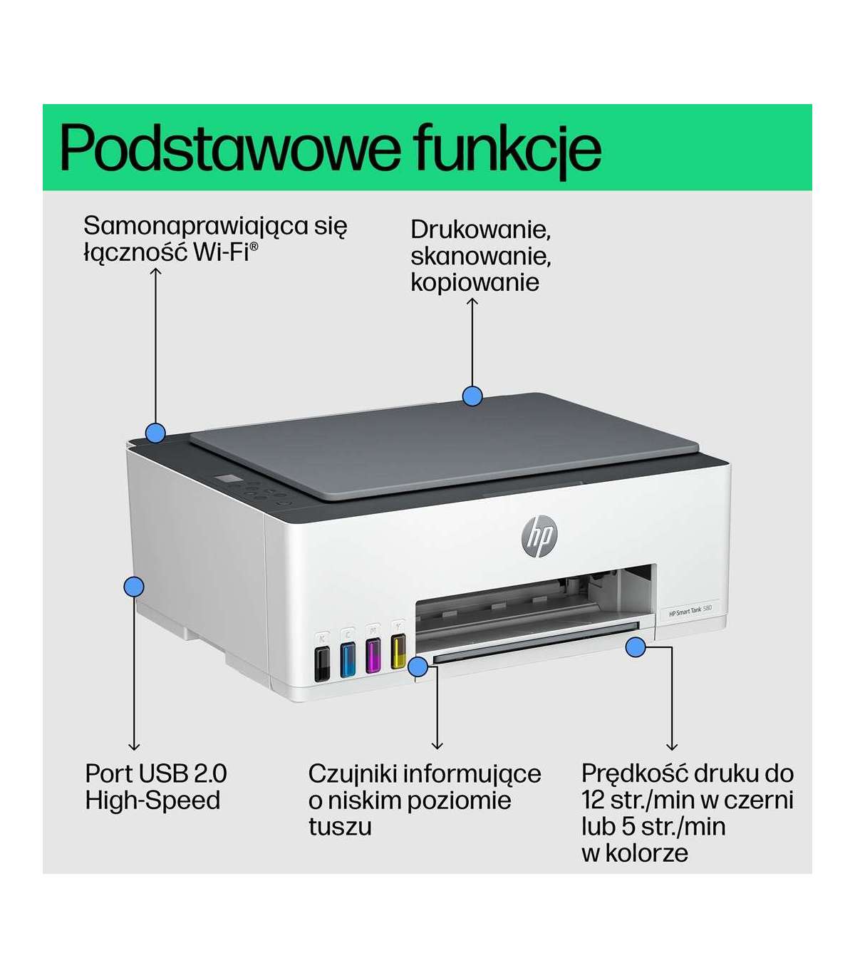HP Smart Tank 580 All-in-One Printer, Home and home office, Print, copy, scan, Wireless High-volume printer tank Print