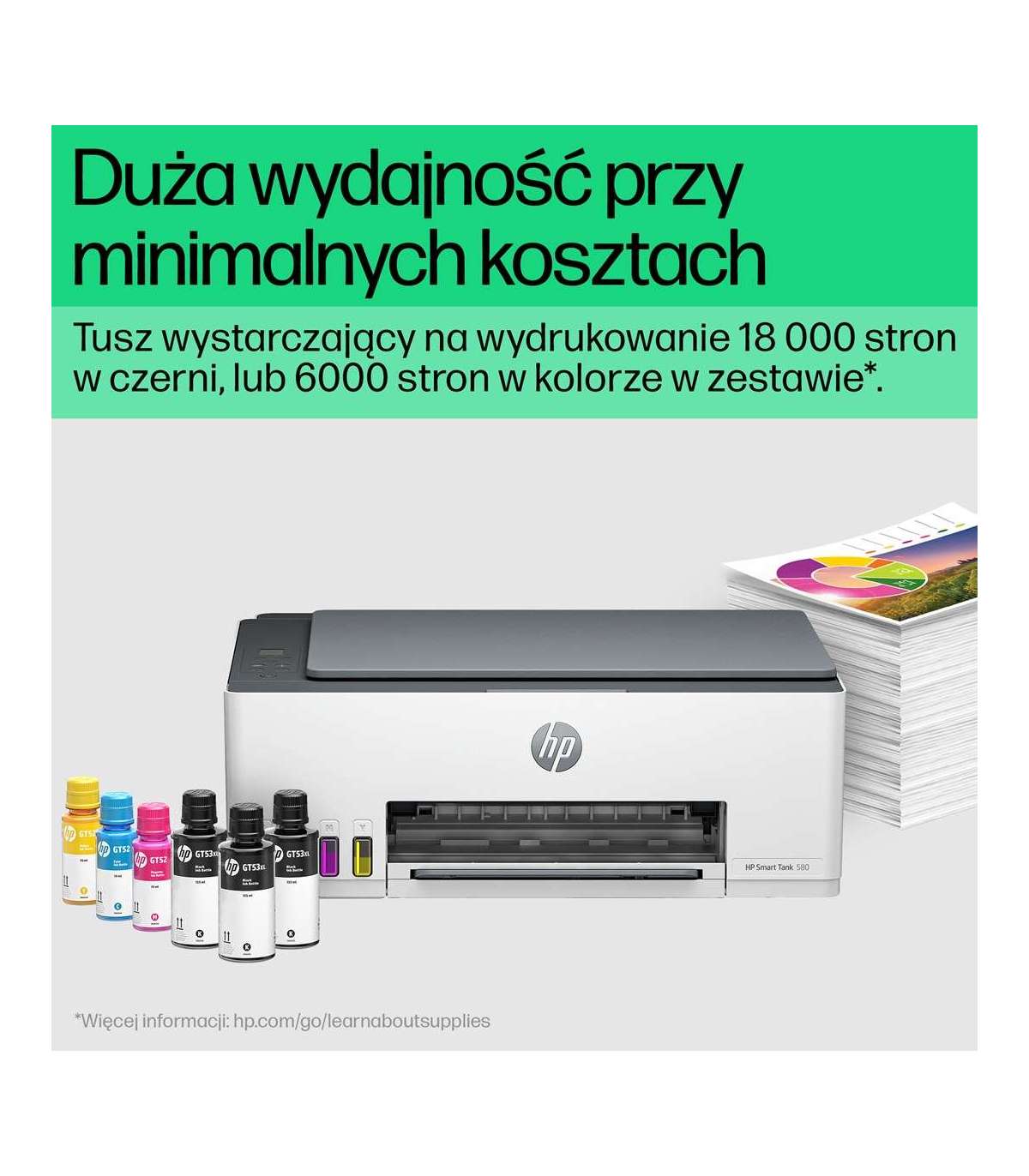 HP Smart Tank 580 All-in-One Printer, Home and home office, Print, copy, scan, Wireless High-volume printer tank Print