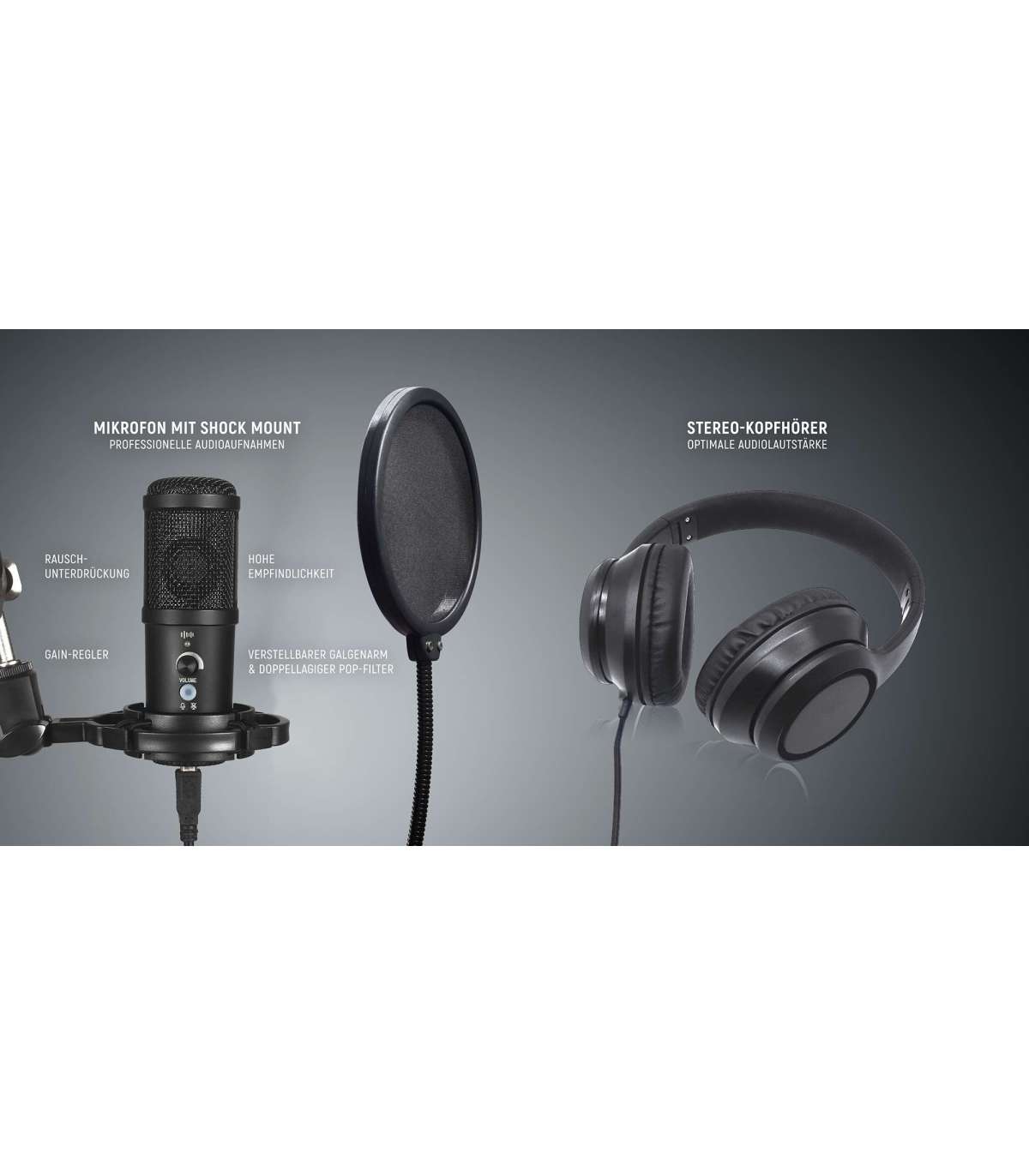 Easypix My Studio Podcast 62021 komplekt, mis sisaldab mikrofoni ja kõrvaklappe