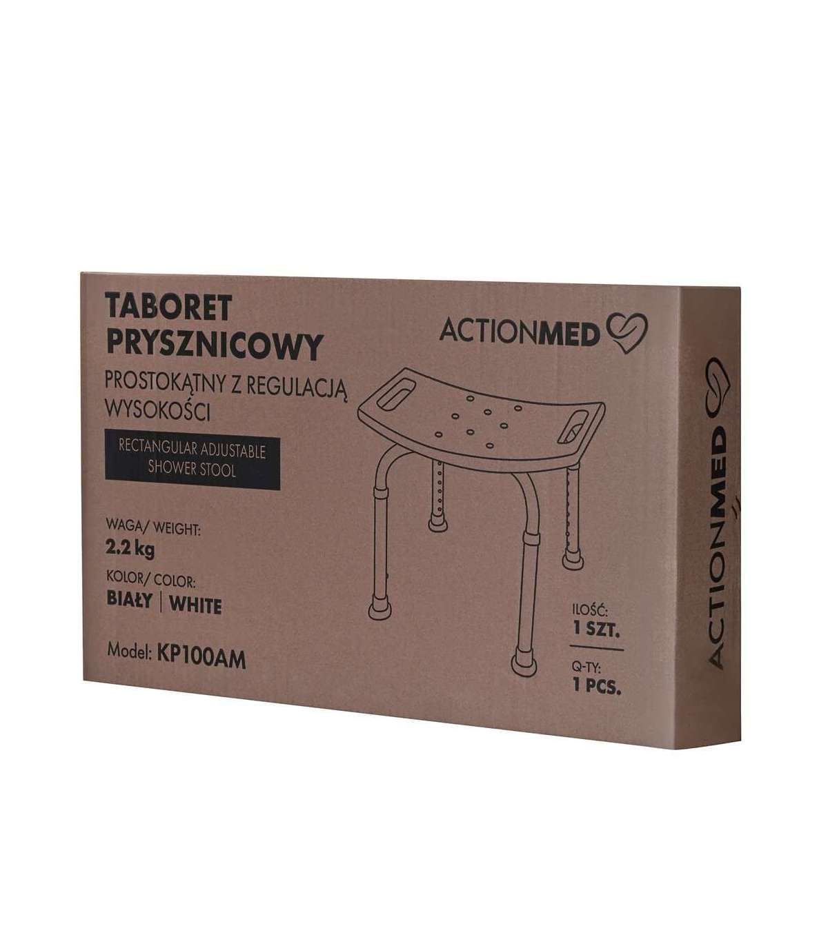 Rectangular shower stool with height adjustment