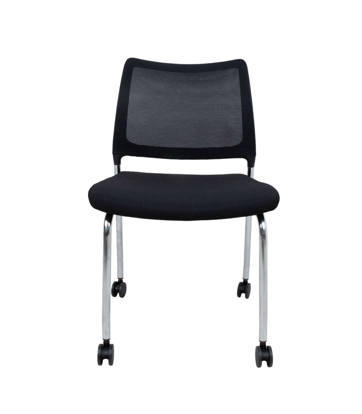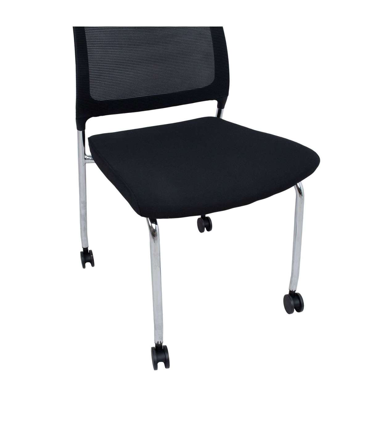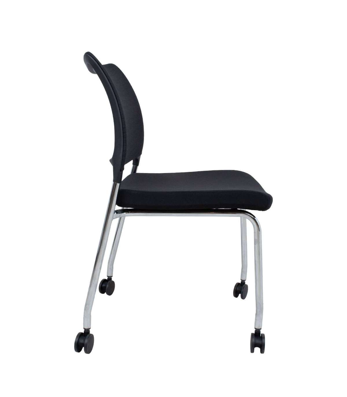 Klienditool VICKI ratastega, must. Tooli seljatoe plastikraam on kaetud polüestervõrkkangaga. Kergelt polsterdatud iste on kaetud polüesterkangaga. Tooli metallist jalad ja raam on kroomitud. Toolil on lukustatavad plastikrattad. Tooli üldmõõdud on 48x55xH83cm. Istme laius 48cm, istme sügavus 46cm, istme kõrgus 47cm. Kaalupiirang 120kg.