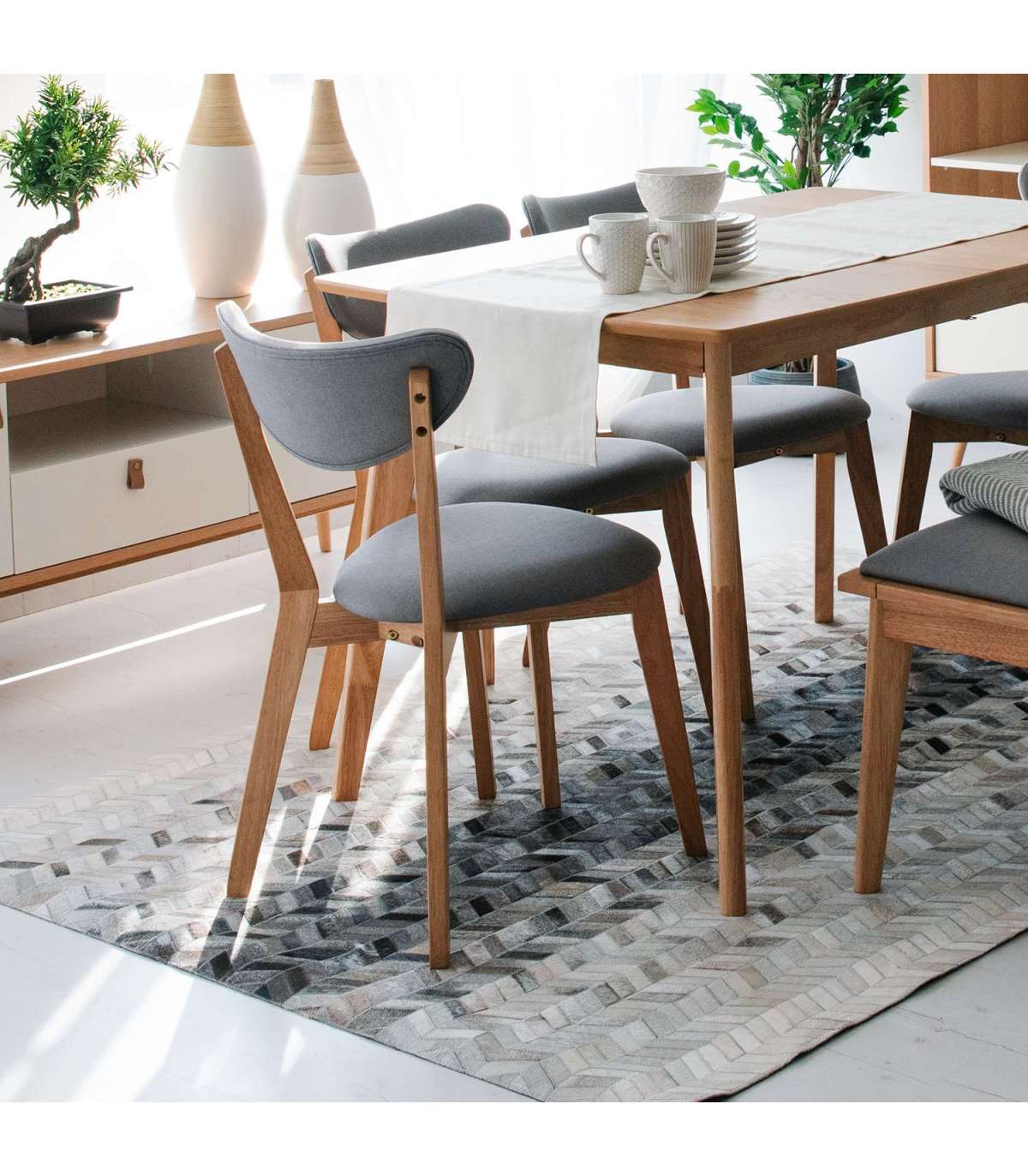 Стул JONNA 48,5x51,5x78,5см, сиденье покрыто серым текстилем, ножки и рама: каучуковое дерево, цвет: натуральный