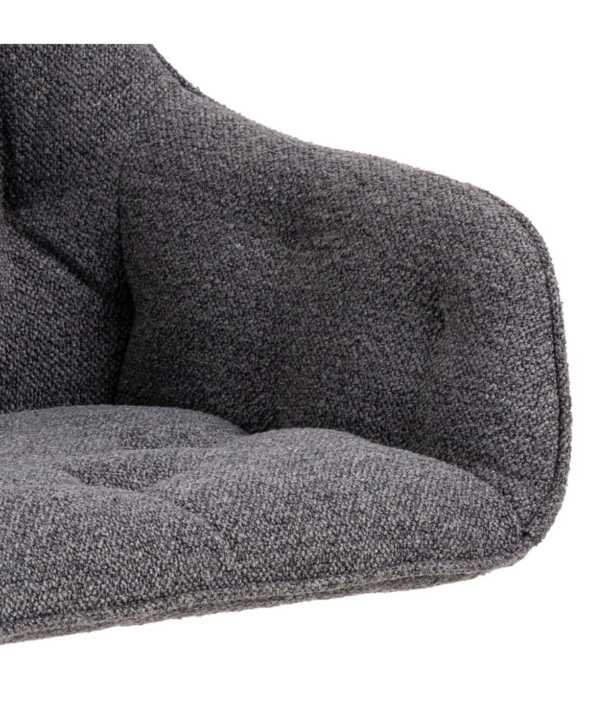 Kaunis tool on puhta siluetiga. Bukleekangaga polsterdatud iste on meeldiv nii istumiseks kui ka visuaalselt. Toolile lisab elegantsust musta värvi terasest pöörlev alus. Mõõdud on 57x54,5xH82cm. HOOLDUS: Hooldus piirdub tolmuimemise ja plekieemaldusega. Plekkide eemaldamisel tuleb olla ettevaatlik. Katsetage plekieemaldajaid esmalt vähem nähtaval alal. Ärge kunagi kasutage lahusteid. Ärge asetage mööblit otsese päikesevalguse kätte. Alus: Kasutage igapäevaseks puhastamiseks seebiveest kuivaks väänatud lappi. Rooste vältimiseks pühkige pind kuivaks. Ärge hõõruge pinda kõvade esemetega.