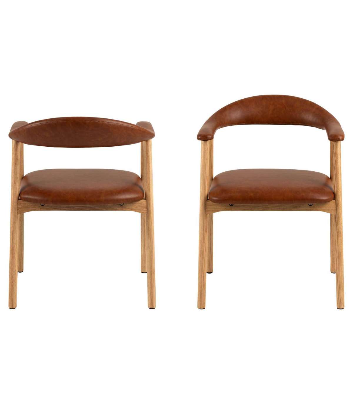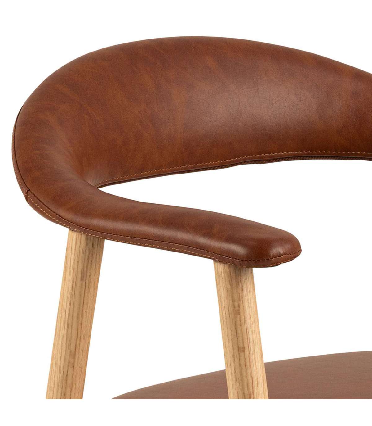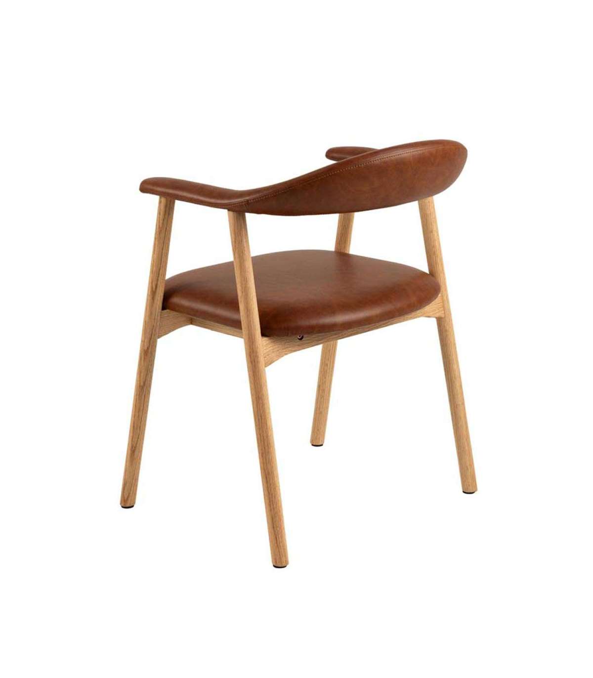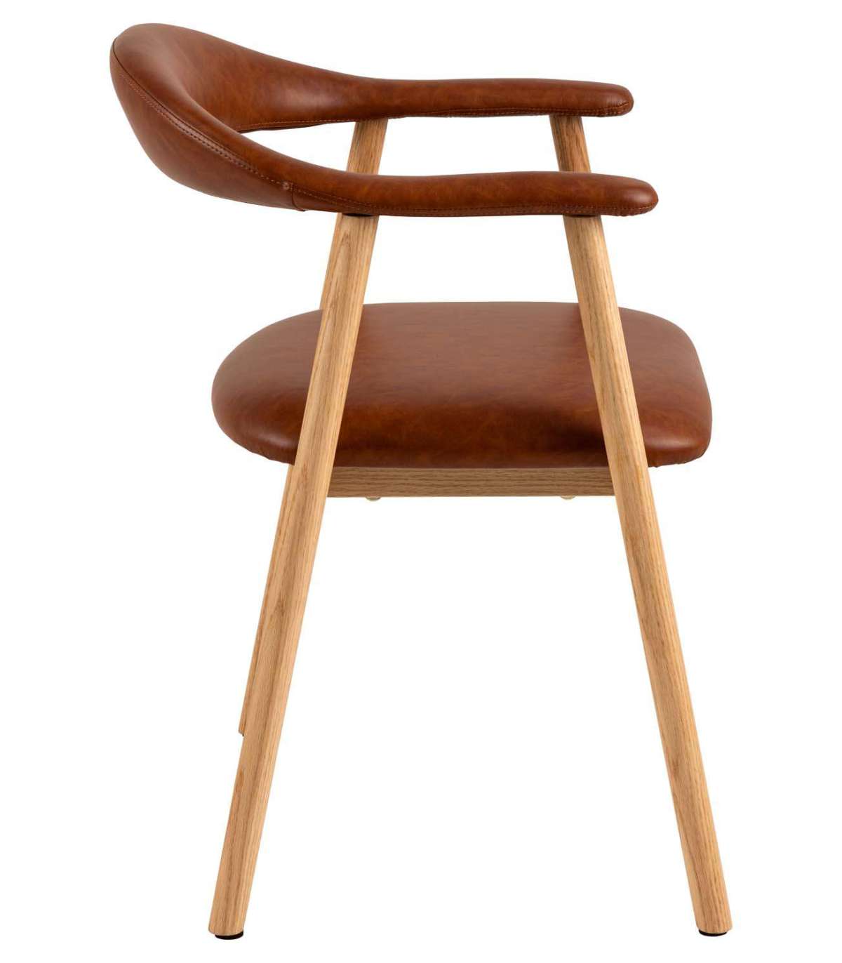 Tooli disain on kaasaegne ja põhjamaise hõnguga. Toolil on käetoed ja avatud seljatoe osa. Õliga töödeldud raam lisab ruumi soojust ja loob kutsuva õhkkonna. Iste on kaetud brändivärvi kunstnahast kangaga. Mõõdud on 56x54xH75,5cm. HOOLDUS: pühkige pind seebiveest kuivaks väänatud lapiga või PU (polüuretaan) pindadele mõeldud vahendiga ja pühkige kuivaks. Kasutage ainult PH neutraalseid (7,0) puhastusvahendeid. Ärge asetage mööblit otsese päikesevalguse kätte. Alus: Kõik plekid tuleb koheselt eemaldada niiske lapiga. Kasutage seebiveest kuivaks väänatud lappi.