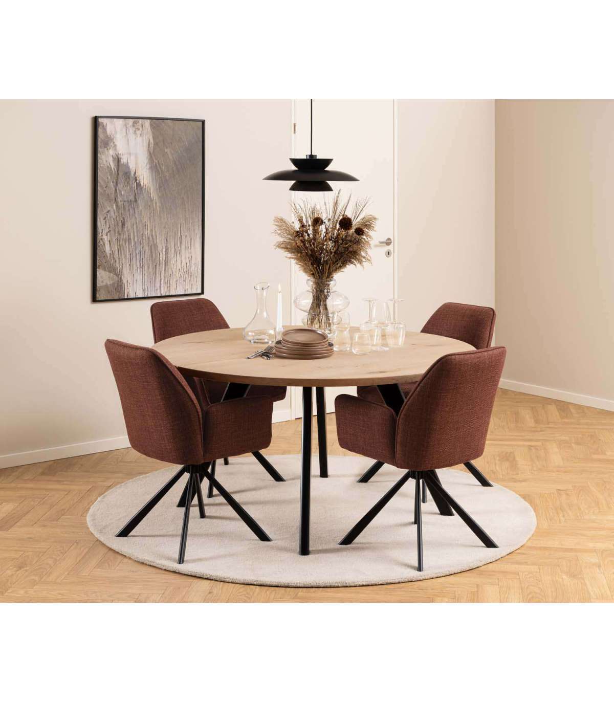 Selgete joontega tool muudab oma kauni siluetiga iga söögitoa elegantsemaks. Iste on kaetud kahetoonilise efektiga kangaga, mis annab toolile kena välimuse. Toolil on musta värvi pöörlev alus. Mõõdud on 61x63xH88,5cm. HOOLDUS: Hooldus piirdub tolmuimemise ja plekieemaldusega. Plekkide eemaldamisel tuleb olla ettevaatlik. Katsetage plekieemaldajaid esmalt vähem nähtaval alal. Ärge kunagi kasutage lahusteid. Ärge asetage mööblit otsese päikesevalguse kätte. Alus: Kasutage igapäevaseks puhastamiseks seebiveest kuivaks väänatud lappi. Rooste vältimiseks pühkige pind kuivaks. Ärge hõõruge pinda kõvade esemetega.