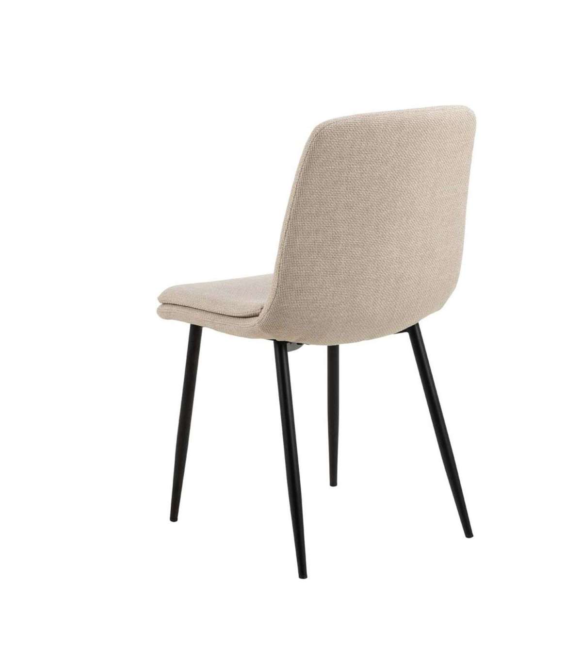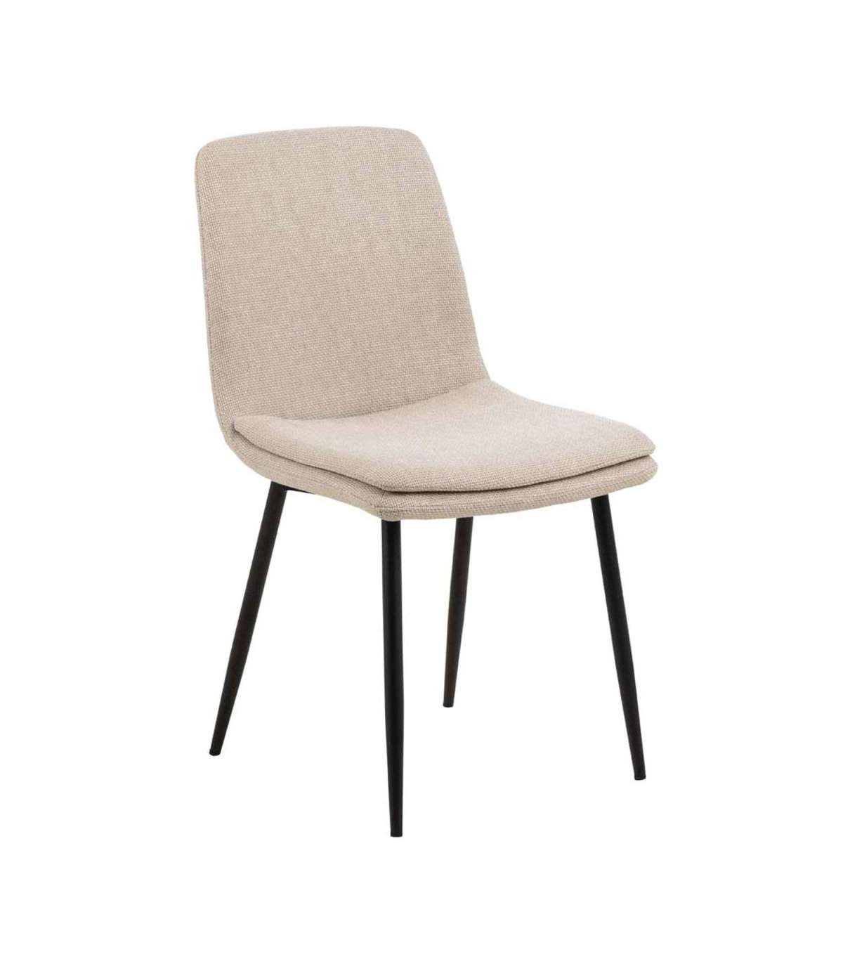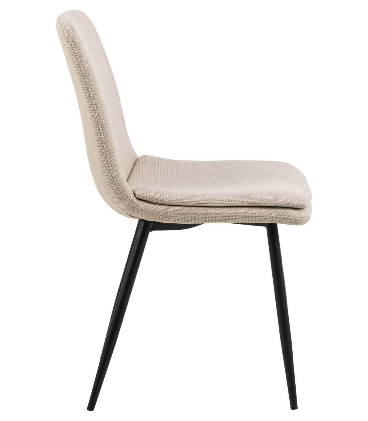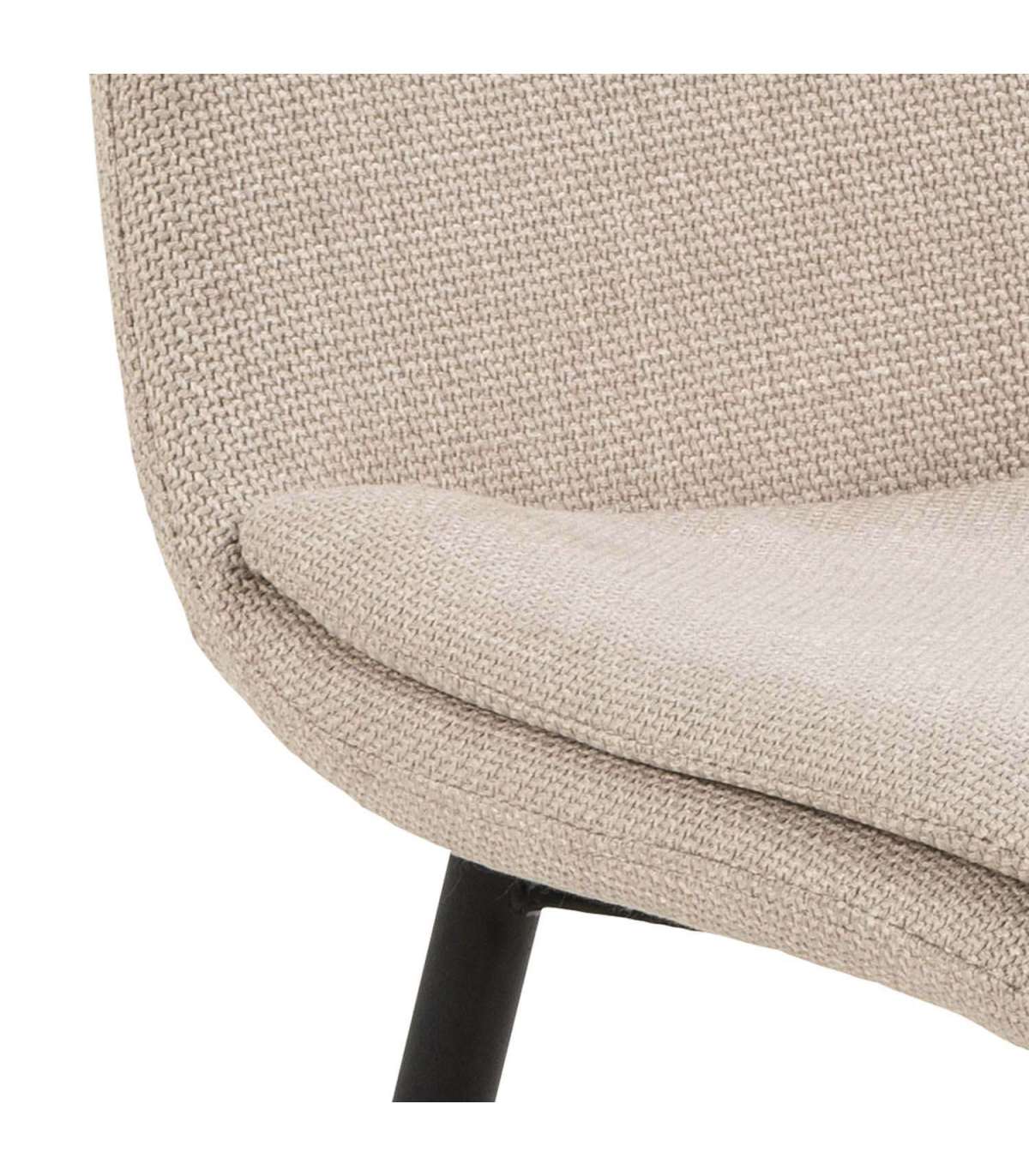 Voolujoonelise siluetiga tool on elegantne ja mitmekülgne. Tool on kaetud kahetoonilise beeži kangaga. Moodsat tooli toetavad peened mustad metallist jalad. Mõõdud on 46x55xH85,5cm. HOOLDUS: Hooldus piirdub tolmuimemise ja plekieemaldusega. Plekkide eemaldamisel tuleb olla ettevaatlik. Katsetage plekieemaldajaid esmalt vähem nähtaval alal. Ärge kunagi kasutage lahusteid. Ärge asetage mööblit otsese päikesevalguse kätte. Alus: Kasutage igapäevaseks puhastamiseks seebiveest kuivaks väänatud lappi. Rooste vältimiseks pühkige pind kuivaks. Ärge hõõruge pinda kõvade esemetega.