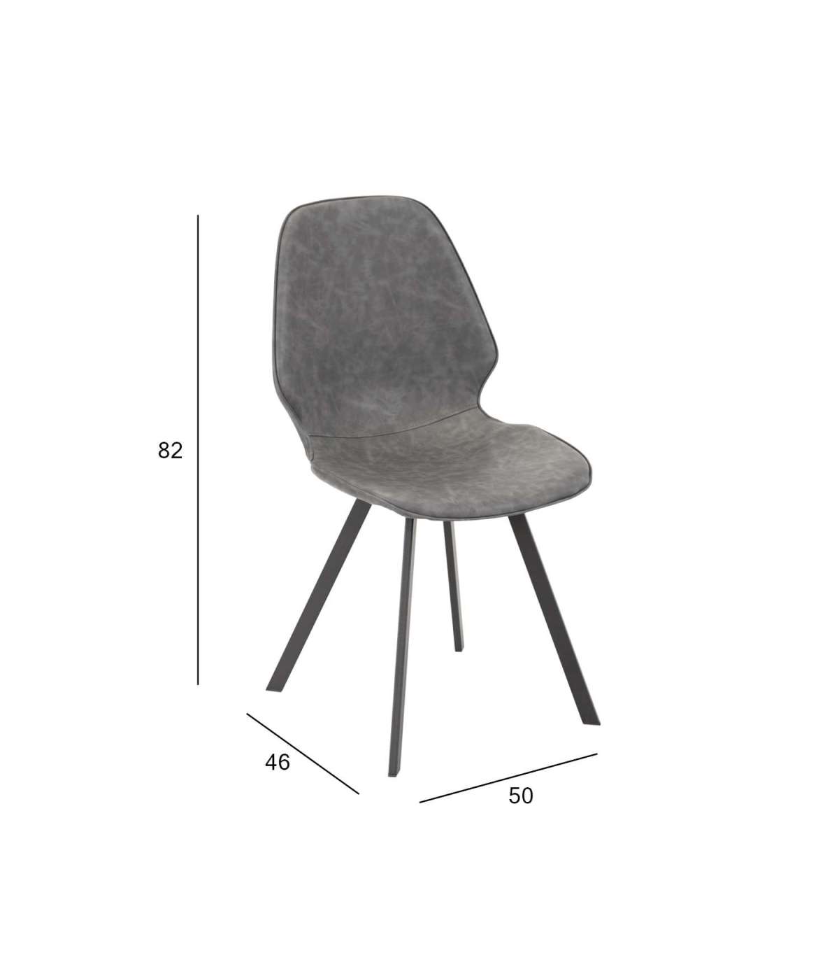 Стул HELENA 46,5x53xH87см. Удобное сиденье кресла обтянуто серой искусственной кожей. Ножки изготовлены из металла и покрыты черной порошковой краской. Высота сиденья 46,5см, ширина сиденья 46,5см, глубина сиденья 41см, высота спинки 44см. Предельный вес 100кг.