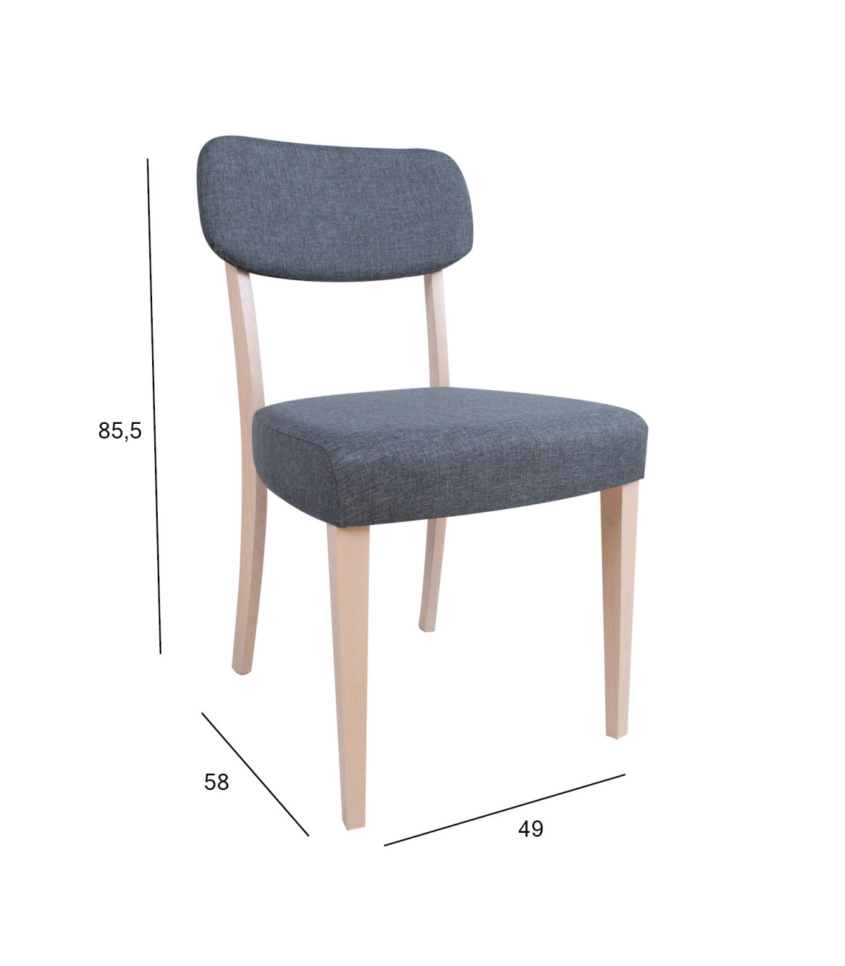 Стул ADORA 49x58xH85,5см, серый. Сиденье и спинка кресла обиты и обтянуты полиэстеровой тканью серого цвета. Ножки и каркас изготовлены из древесины бука и покрыты светлым лаком. Ширина сиденья 48см, глубина сиденья 44см, высота сиденья 48см, высота спинки 40см. Ограничение по весу 100кг.