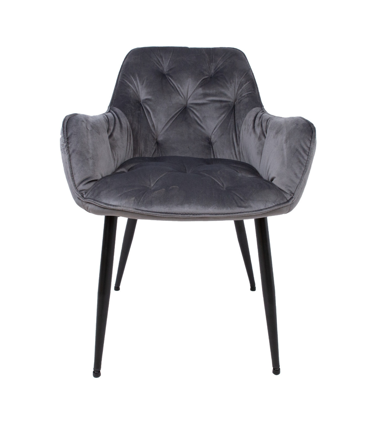 Стул BRITA 61x57x83см, серый бархат. Удобное сиденье с мягкой обивкой полностью покрыто серой бархатной тканью. Высота сиденья 47,5см. Материал покрытия: 100% полиэстер, Martindale 25 000. Каркас сиденья: металл и фанера. Обивка: пенополиуретан. Металлические ножки с порошковым покрытием черного цвета. Максимальный вес 120кг.