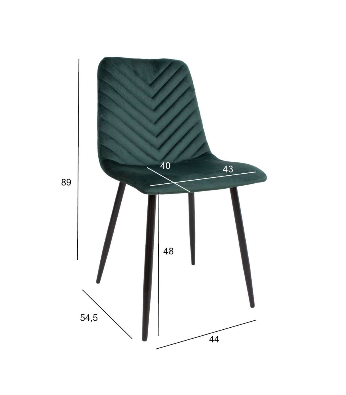 Стул BRIE 54,5x44x89см, темно-зеленый бархат. Удобное сиденье с мягкой обивкой полностью покрыто бархатной тканью, 100% полиэстер, Martindale 25 000. Металлические ножки с порошковым покрытием черного цвета. Высота сиденья 51см. Максимальный вес 120кг.