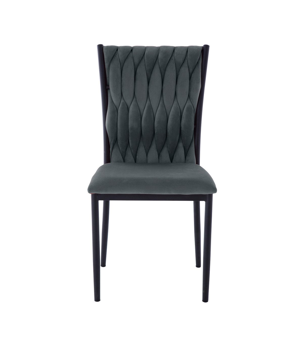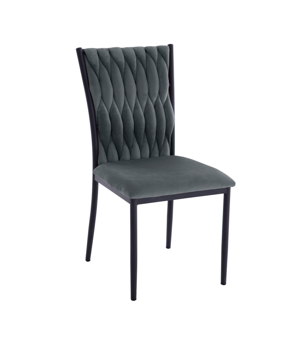 Стул EMORY, серый бархат. Сиденье и спинка стула обиты мягкой тканью и обиты бархатом. Объемная волнообразная набивка спинки достигается в технике плетения. Материал покрытия: 100% полиэстер, 260 г/м?. Martindale 25 000. Ножки и каркас стула металлические и покрыты порошковой краской черного цвета. Размеры кресла 48x44xH94см, высота сиденья 48см. Максимальный вес 120кг.