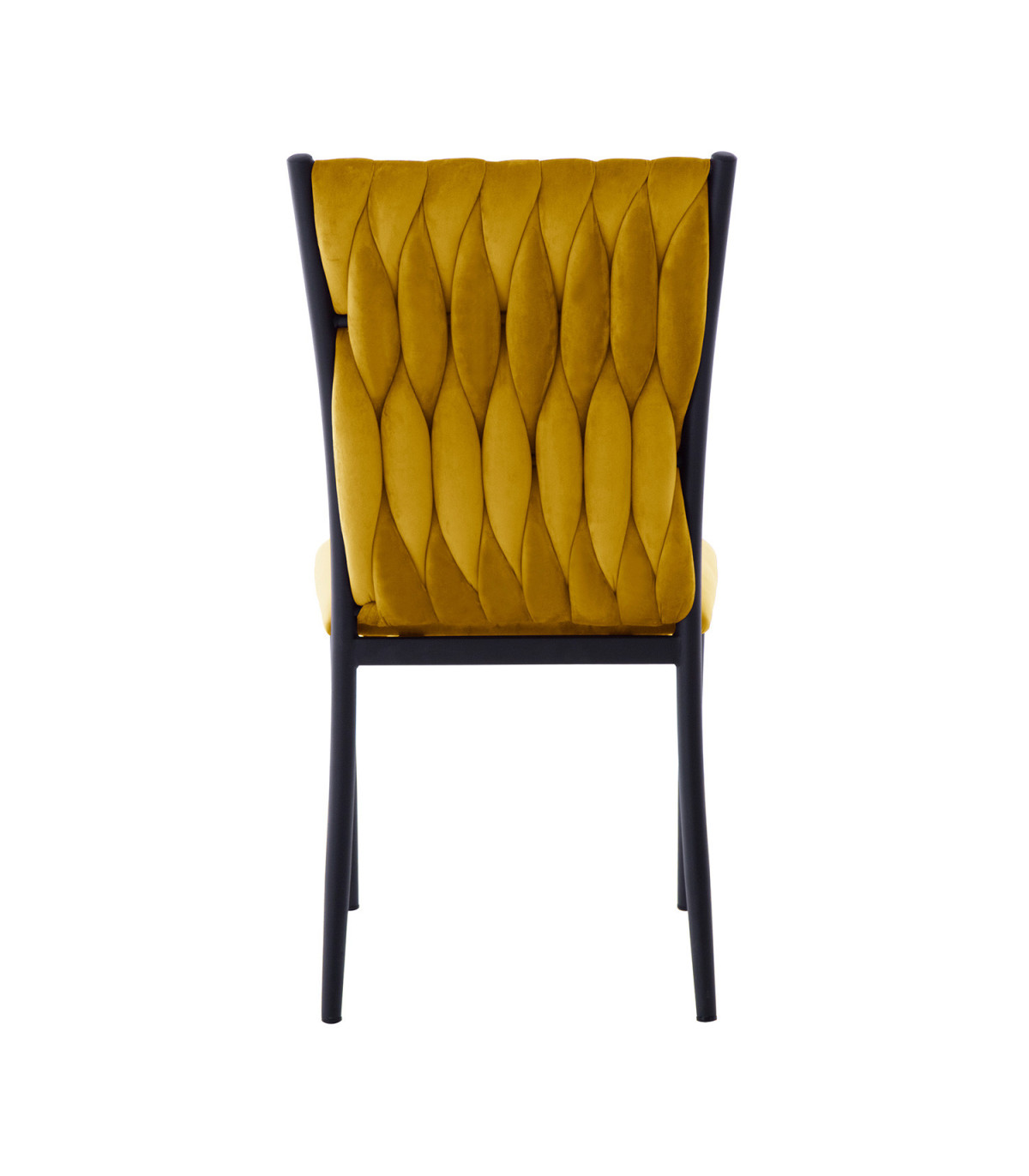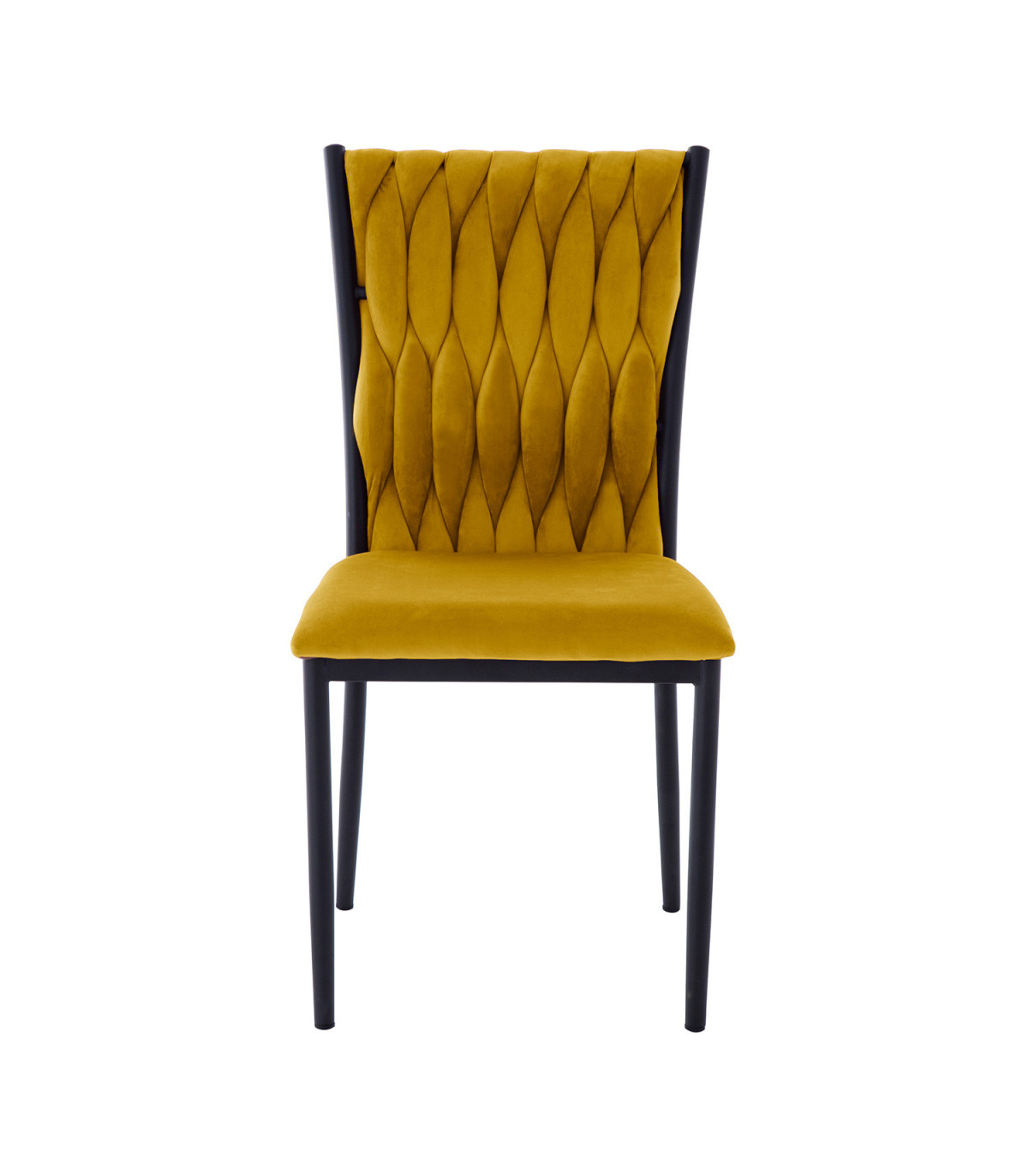 Стул EMORY, золотисто-желтый бархат. Сиденье и спинка стула обиты мягкой тканью и обиты бархатом. Объемная волнообразная набивка спинки достигается в технике плетения. Материал покрытия: 100% полиэстер, 260 г/м?. Martindale 25 000. Ножки и каркас стула металлические и покрыты порошковой краской черного цвета. Размеры кресла 48x44xH94см, высота сиденья 48см. Максимальный вес 120кг.