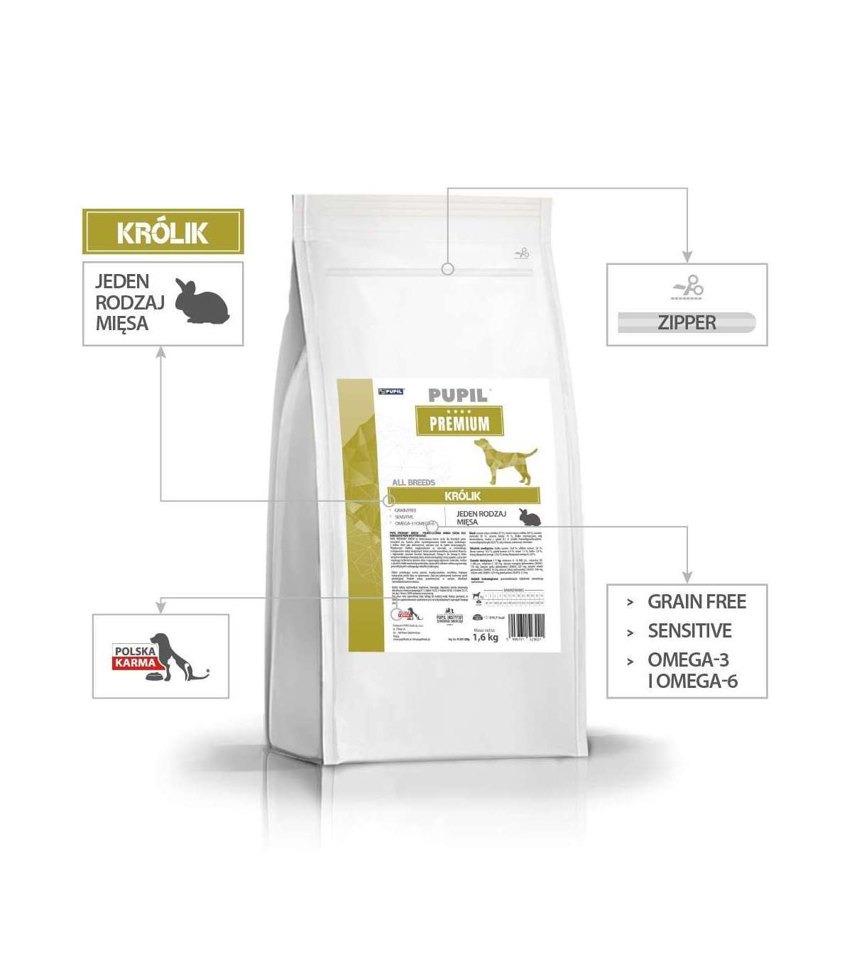 PUPIL Premium mono bogata w królika Breads 1,6 kg
