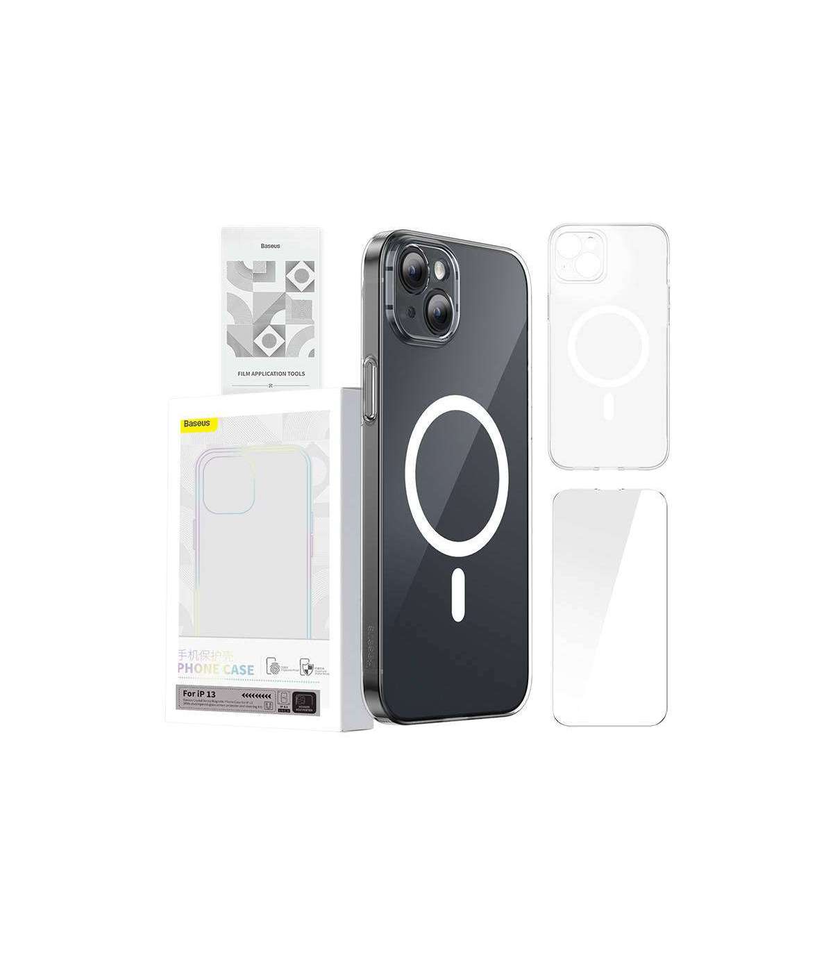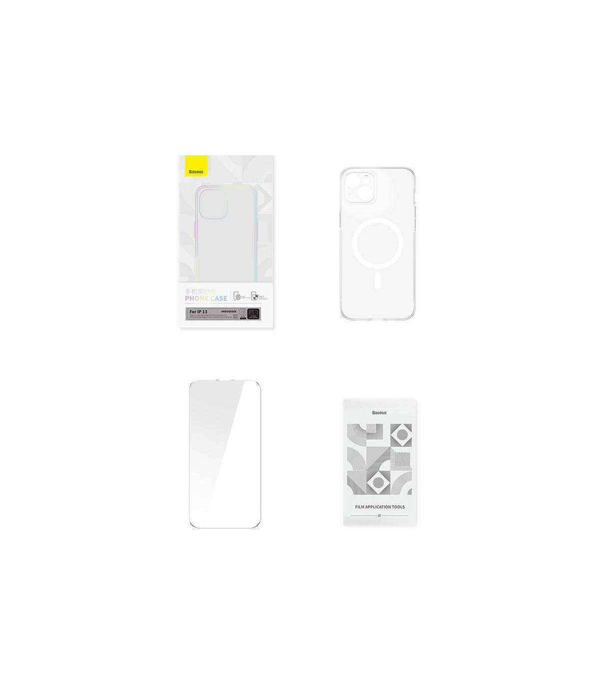 Baseus Magnetic Crystal Clear protective case for iPhone 13 (transparent) + tempered glass + cleaning kit