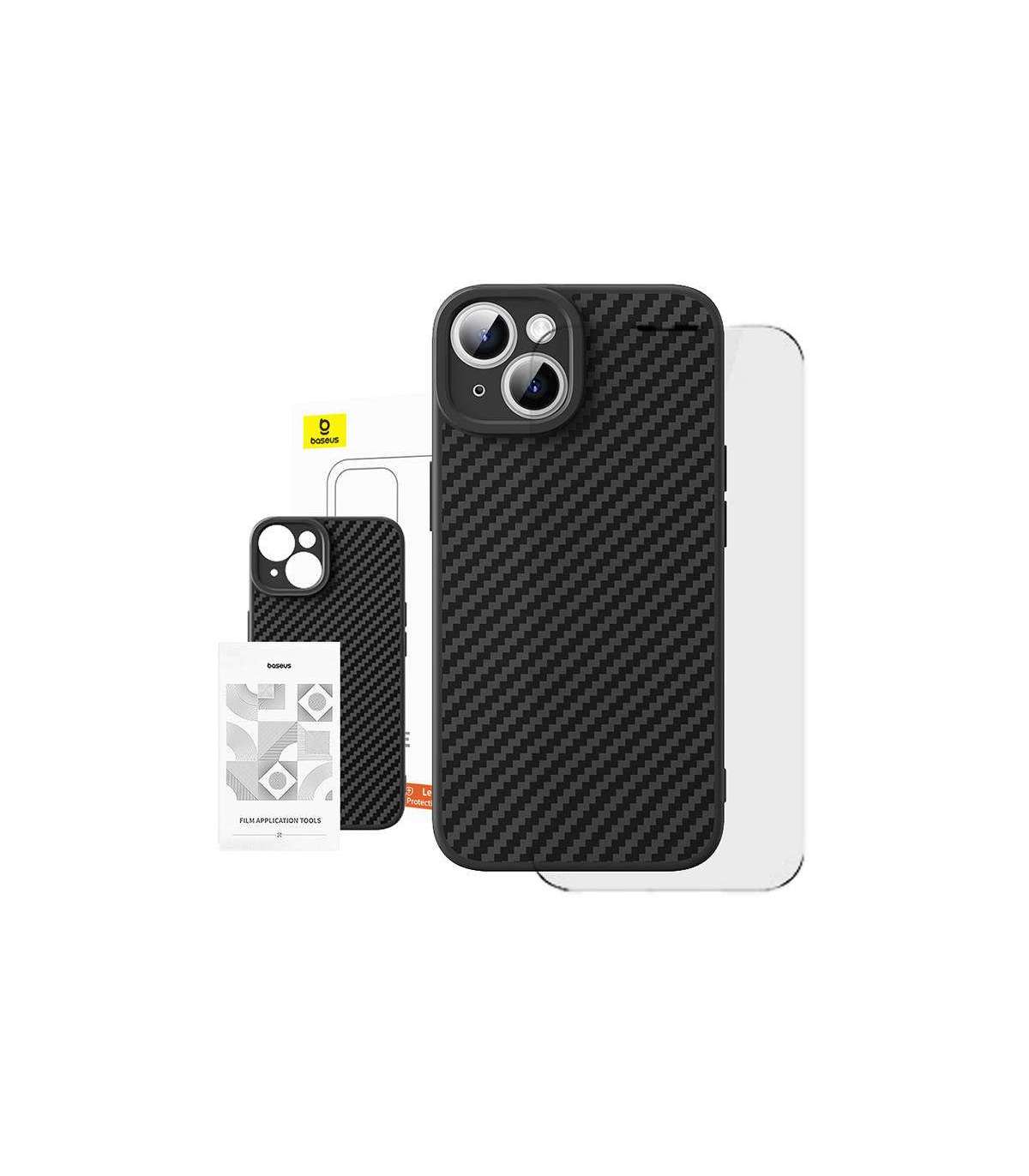 Case Baseus Synthetic Fiber iPhone 15 Plus + tempered glass