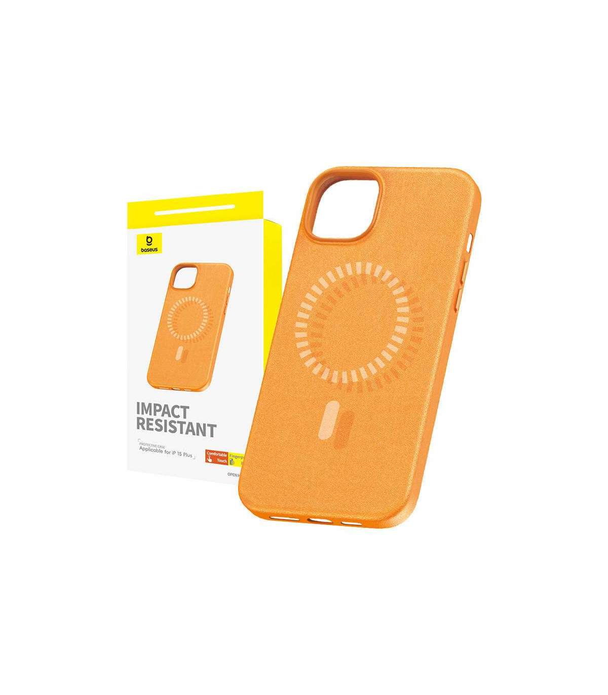 Magnetic Phone Case for iPhone 15 Plus Baseus Fauxther Series (Orange)