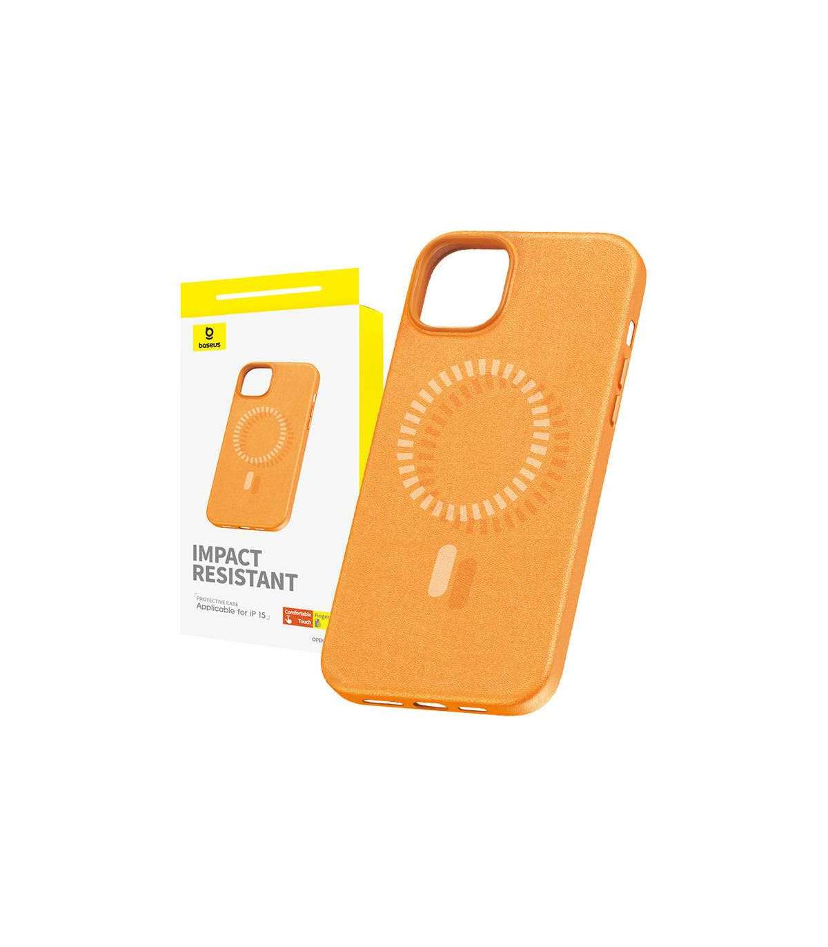 Magnetic Phone Case for iPhone 15 Baseus Fauxther Series (Orange)