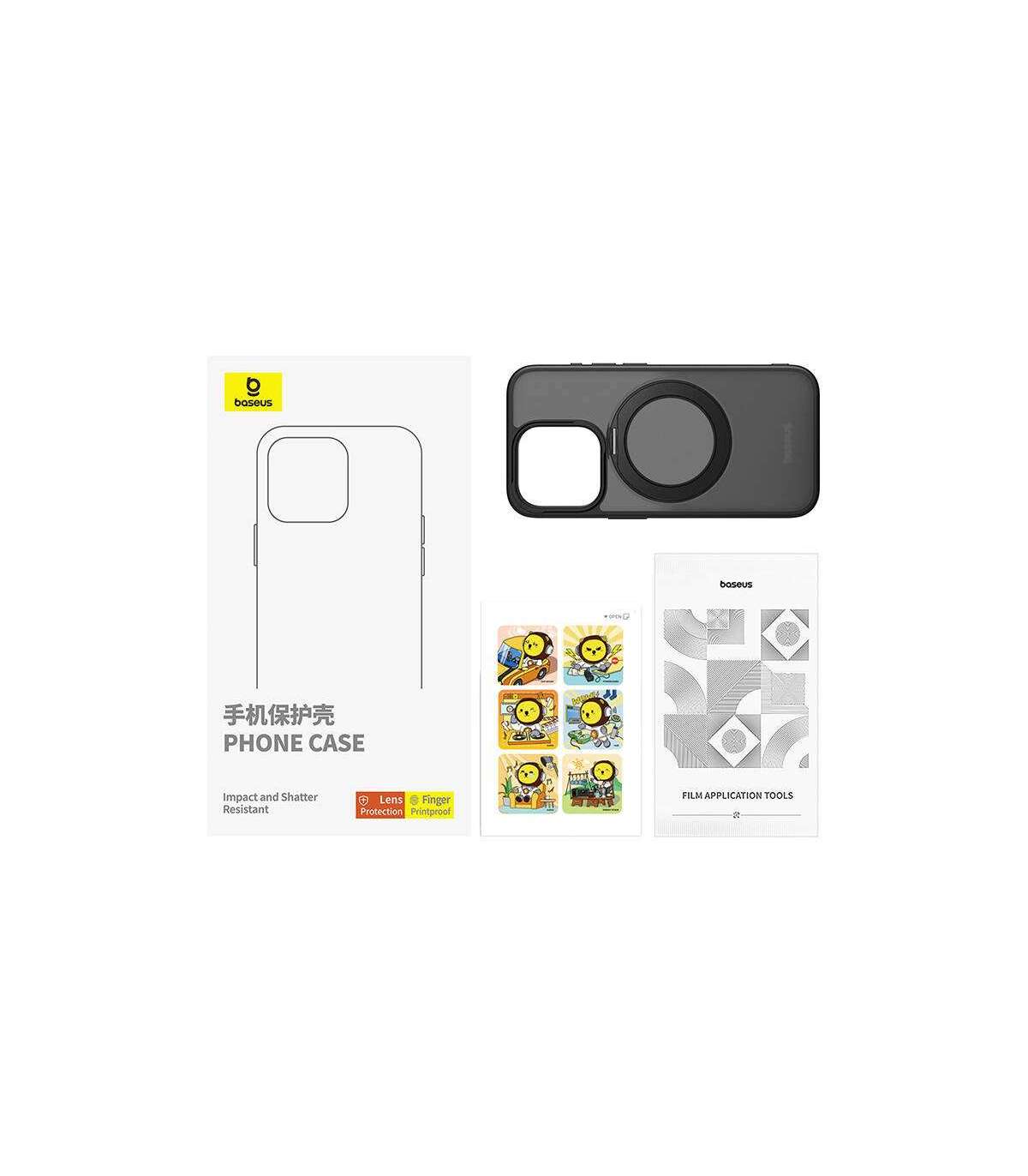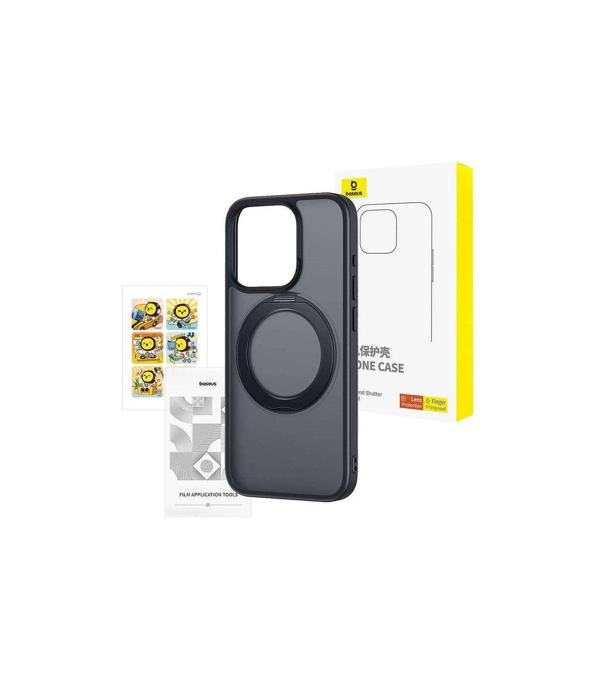 Baseus SkyRing Magnetic case with stand for iP 15 Pro + tempered glass and cleaning kit (black).