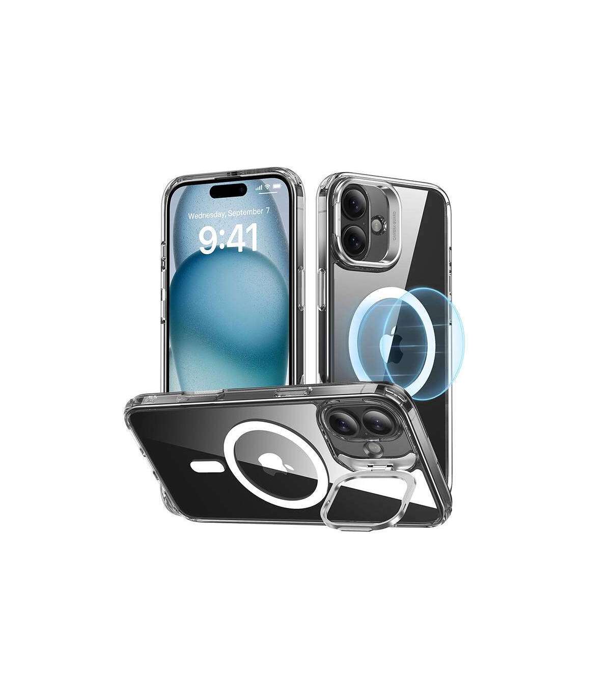ESR Classic Hybrid (HaloLock) Case with Stand for iPhone 16 Plus (transparent).