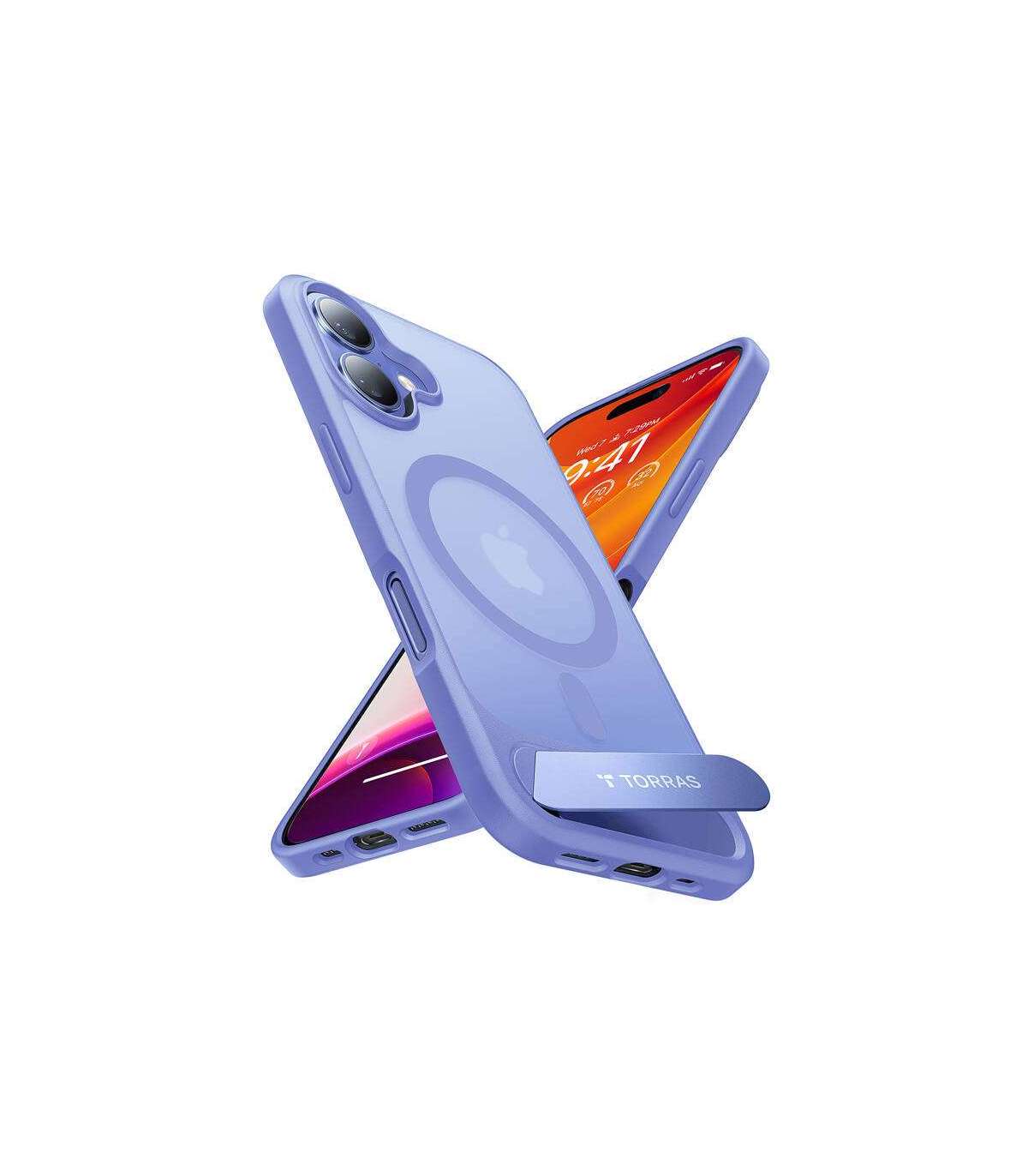 The Torras Pstand case for iPhone 16 features a magnetic design and offers a stable stand for comfort and protection of your device. It also allows fast wireless charging, and compatibility with magnetic accessories enhances its functionality.