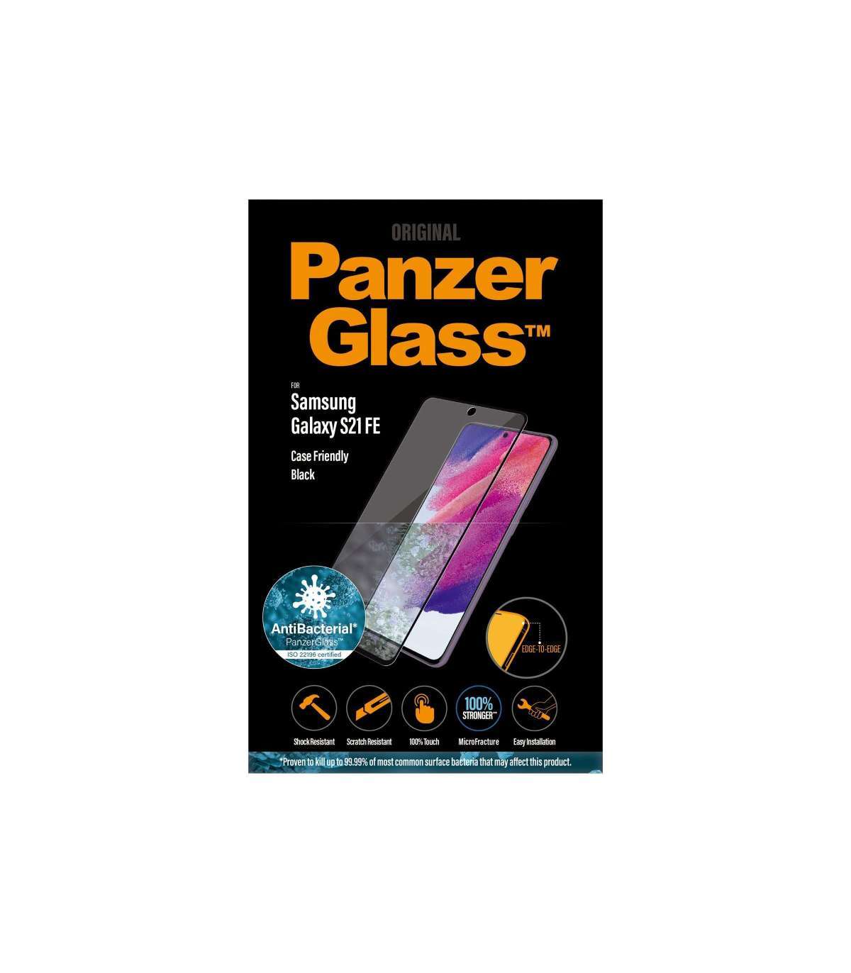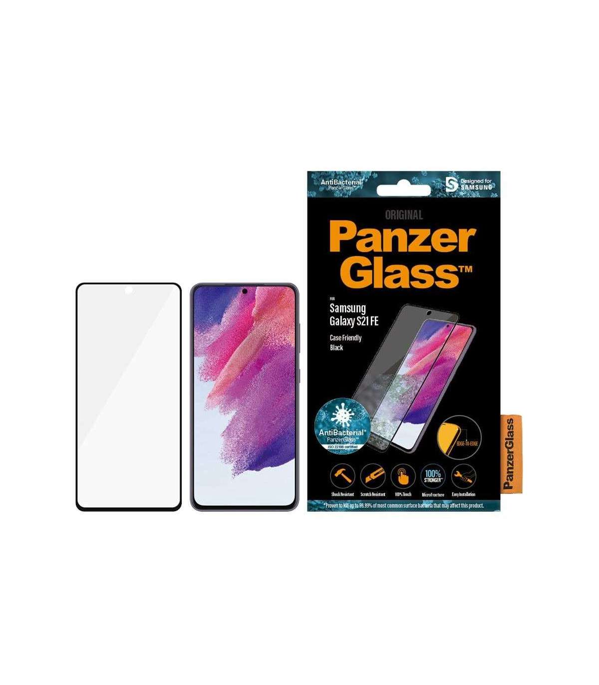PanzerGlass | Samsng | Galaxy S21 FE CF | Hybrid glass | Black | Antibacterial; Works with in-screen fingerprint reader; Full frame coverage; Rounded edges | Screen Protector