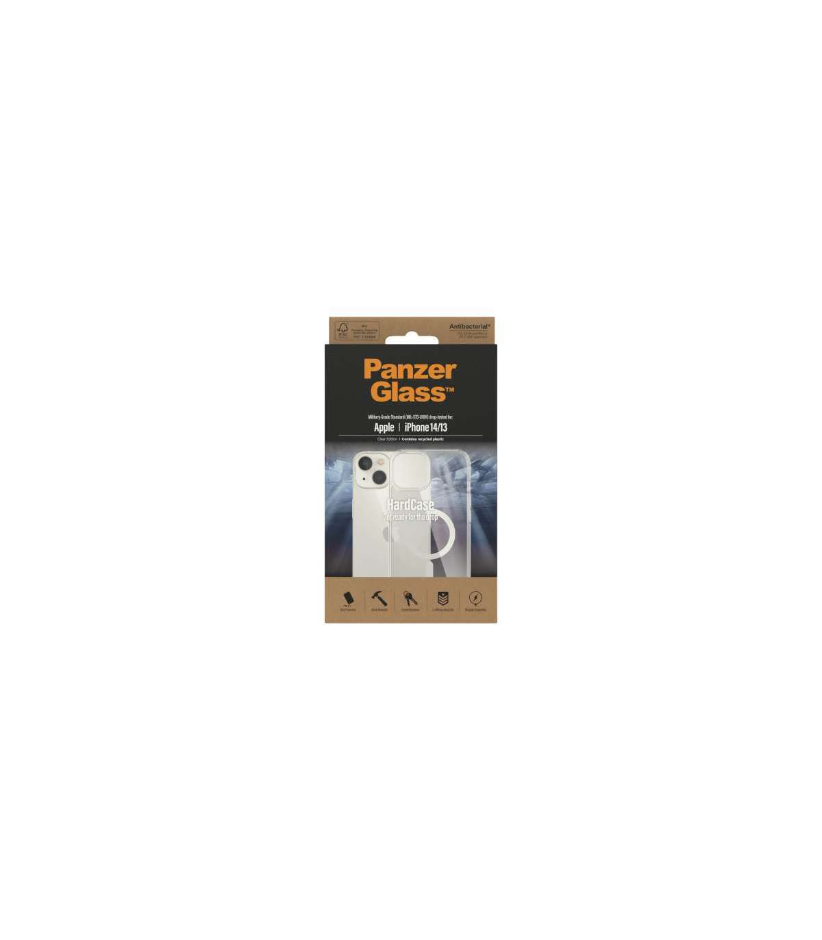 PanzerGlass | HardCase MagSafe Compatible | Back protection | Apple | iPhone 14/13 | 100% Recycled Polyurethane (TPU) | Clear | MagSafe compatible; Military Grade Standard; 100% recycled frame material