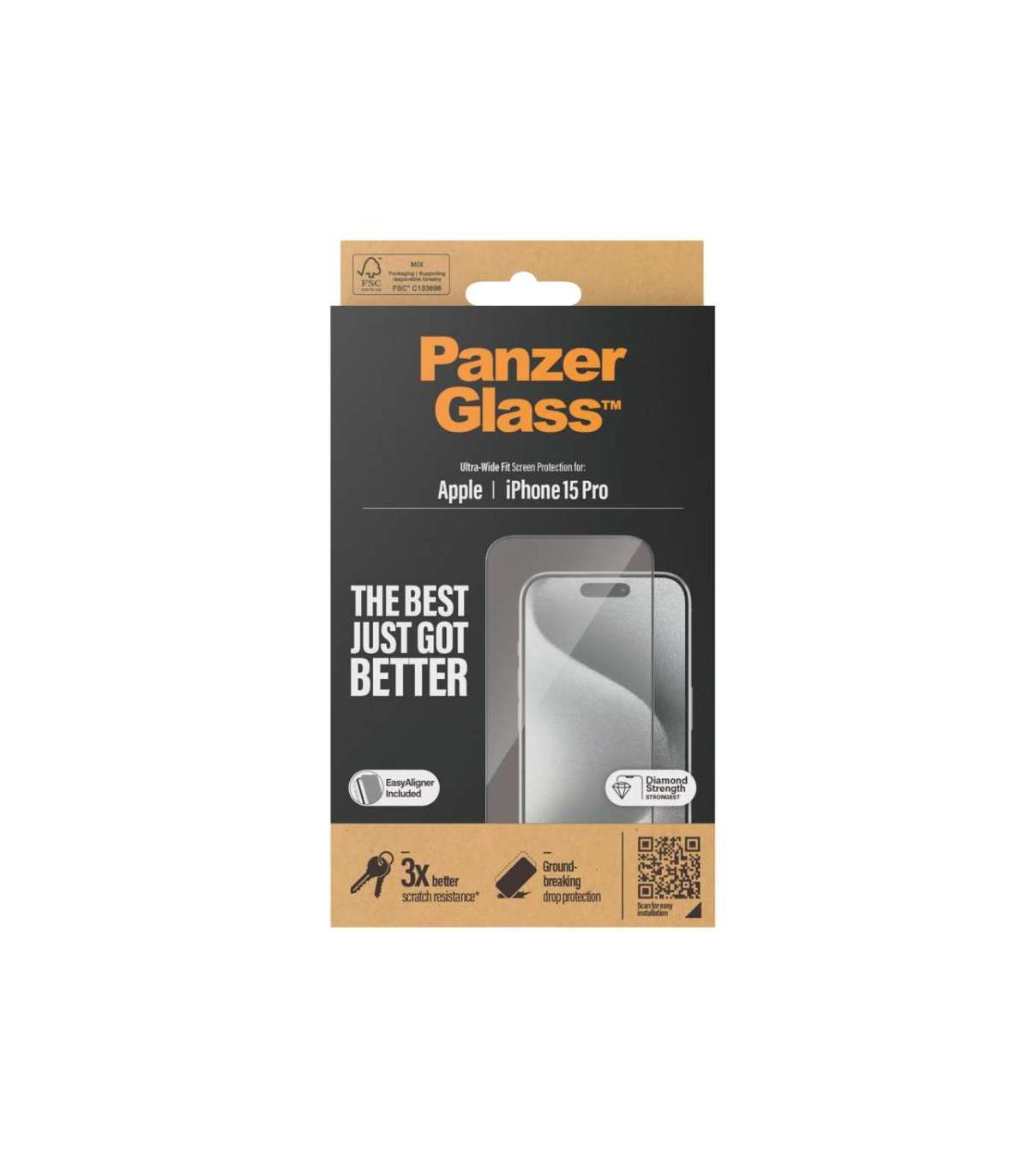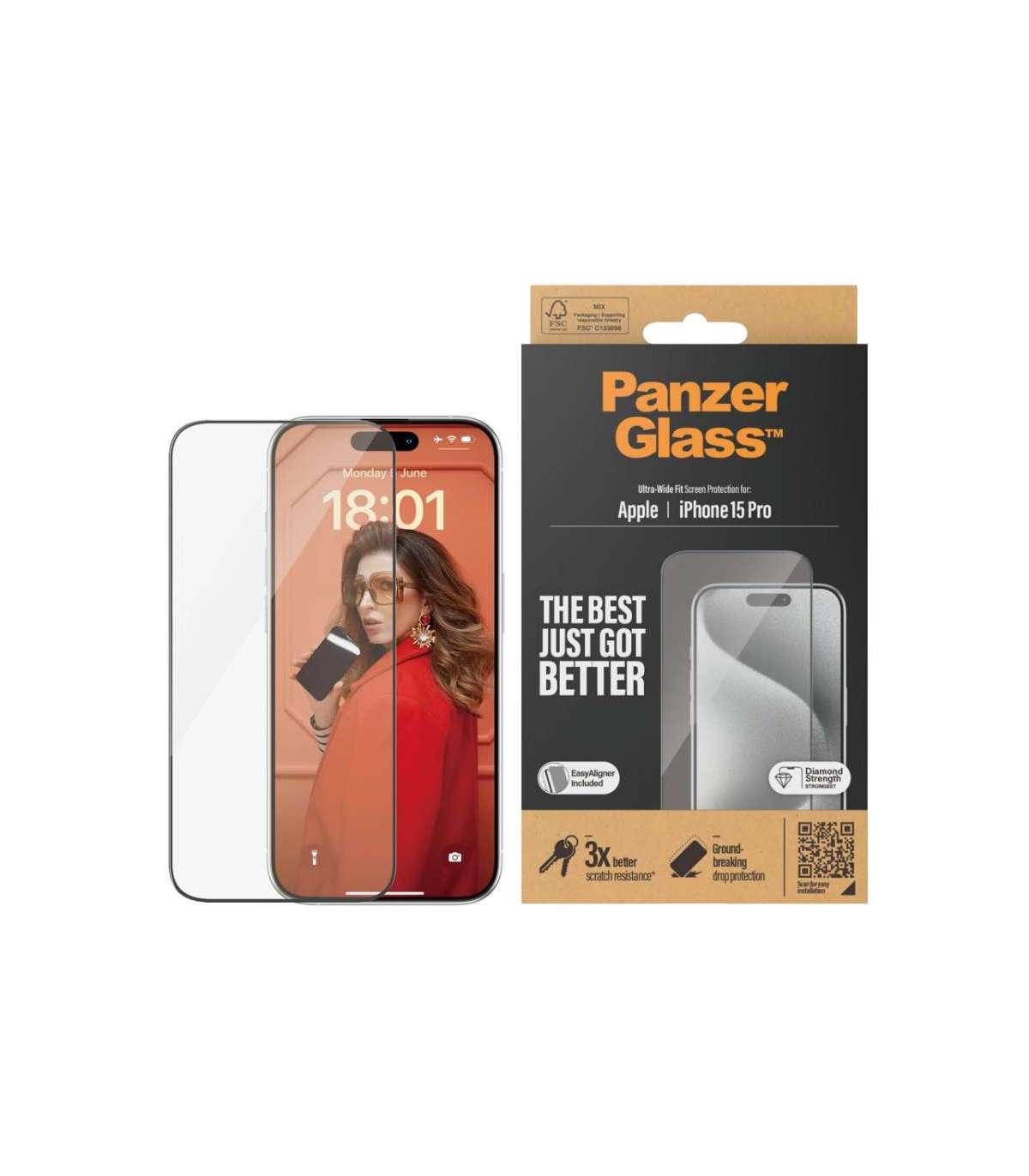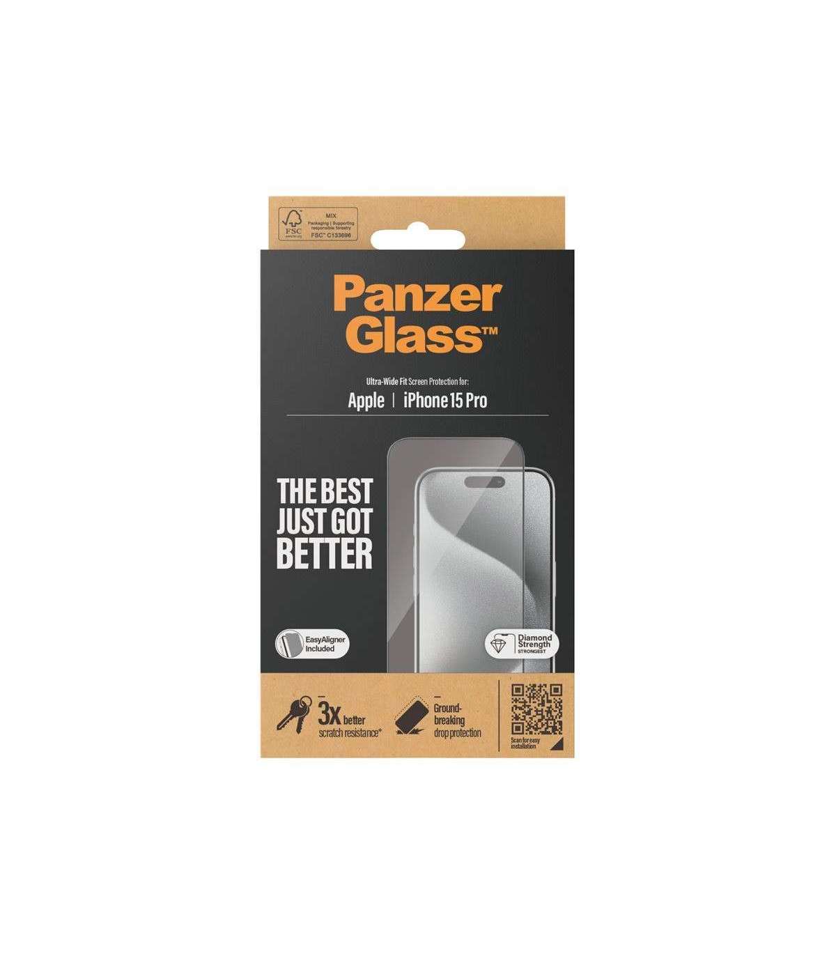 PanzerGlass | Screen protector | Apple | iPhone 15 Pro | Glass | Clear | Easy installation; Fingerprint resistant; Anti-yellowing | Ultra-Wide Fit