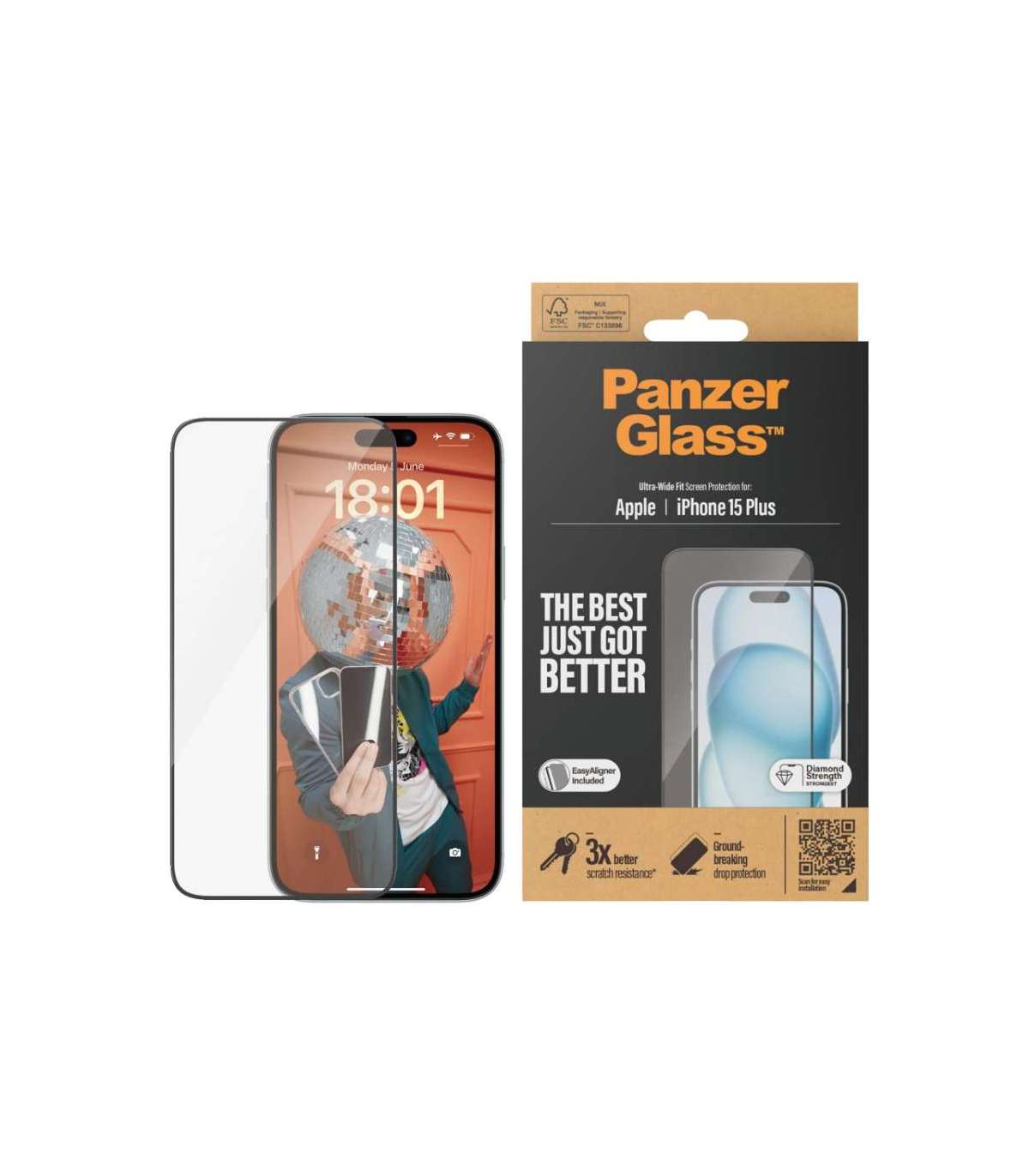 PanzerGlass | Screen protector | Apple | IPhone 15 Plus | Glass | Transparent | Ultra-wide fit, Scratch resistant, Drop protection, EasyAligner included