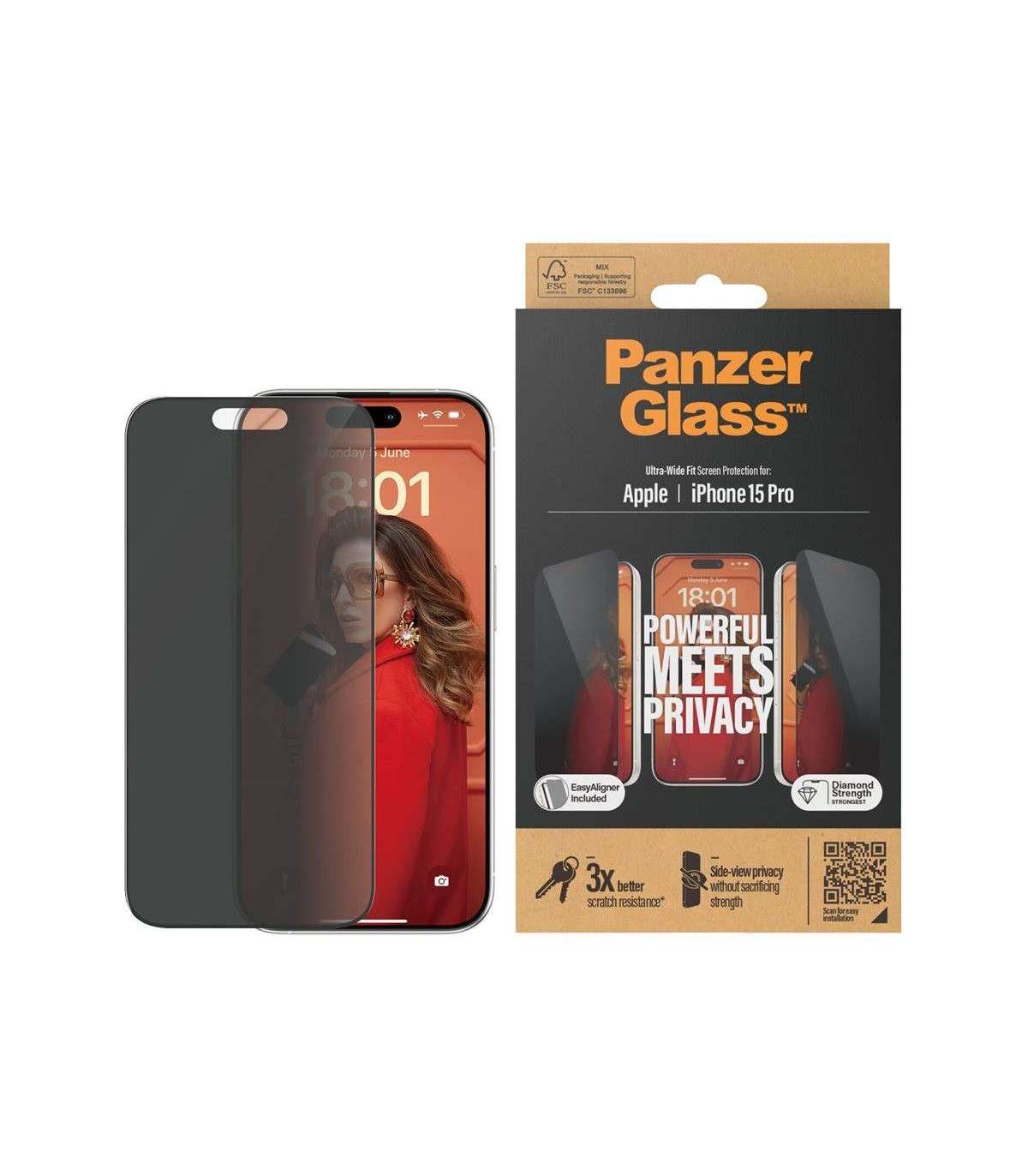 PanzerGlass | Screen protector | Apple | iPhone 15 Pro | Glass | Black | Ultra-Wide Fit w. EasyAligner