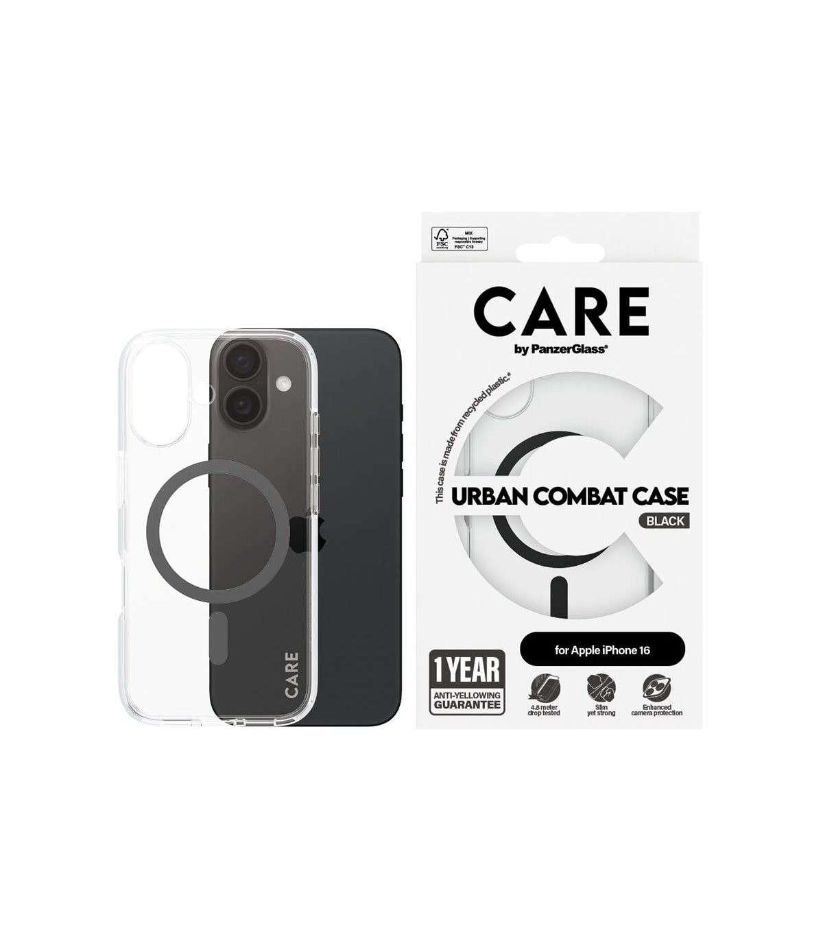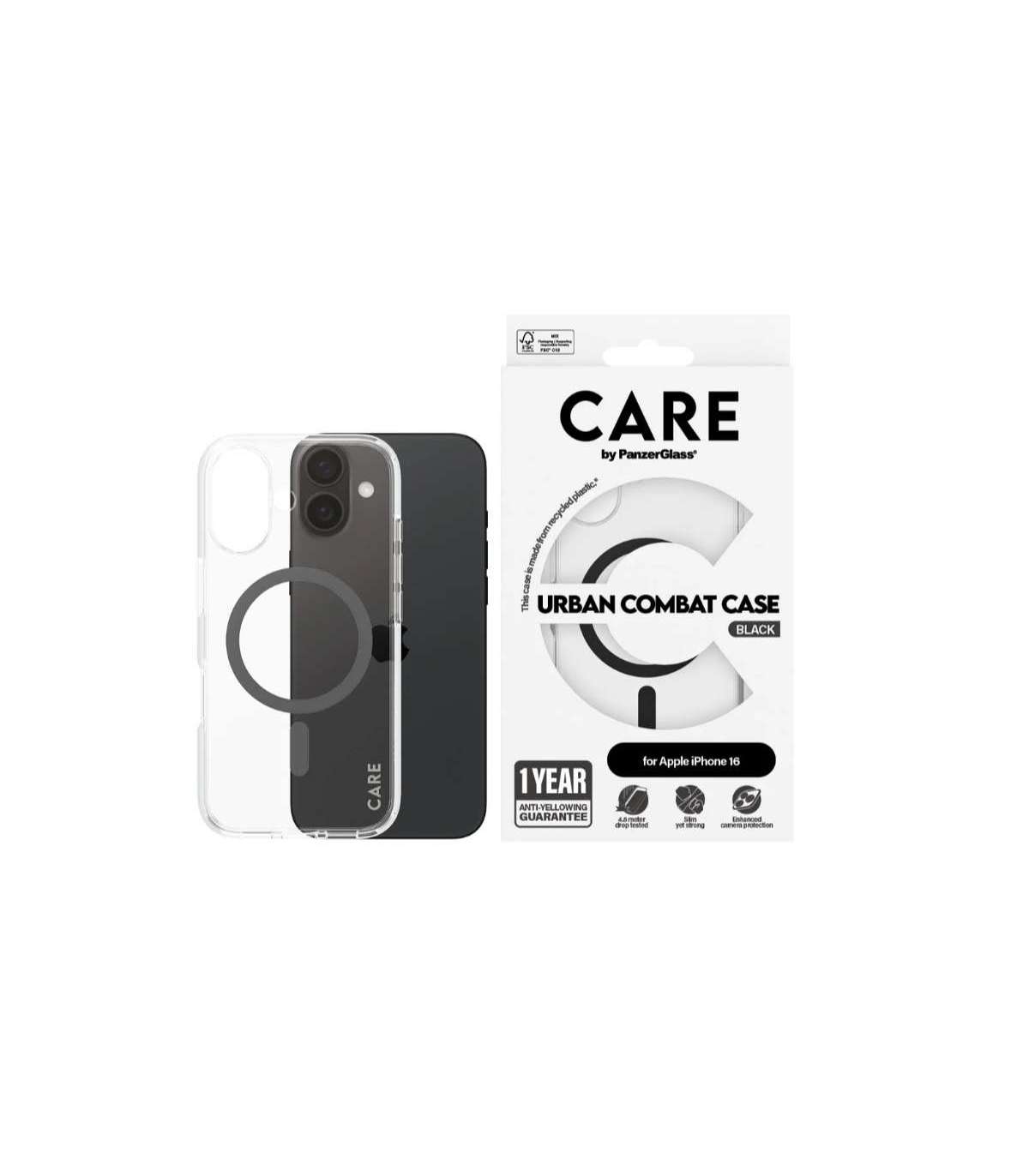 CARE Flagship Case | Back cover | Apple | iPhone 16 | Recycled plastic | Black | MagSafe