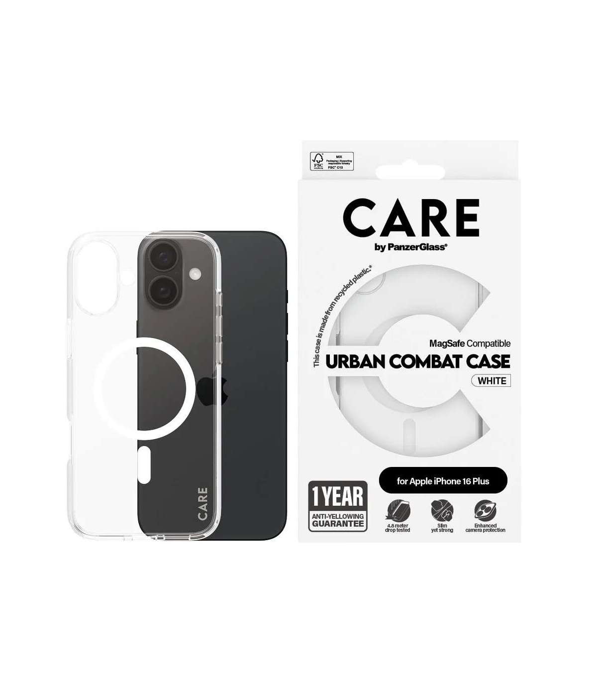 CARE by PanzerGlass Case Flagship | Back protection | Apple | iPhone 16 Plus | Recycled plastic | White | MagSafe