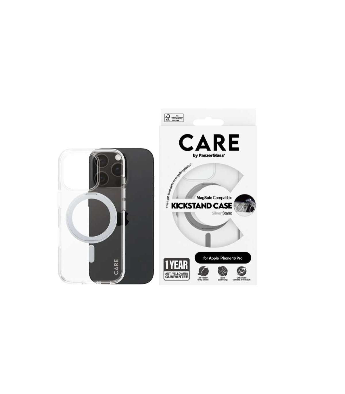 CARE Feature Case Back cover Apple iPhone 16 PRO Recycled plastic Silver Kickstand & MagSafe