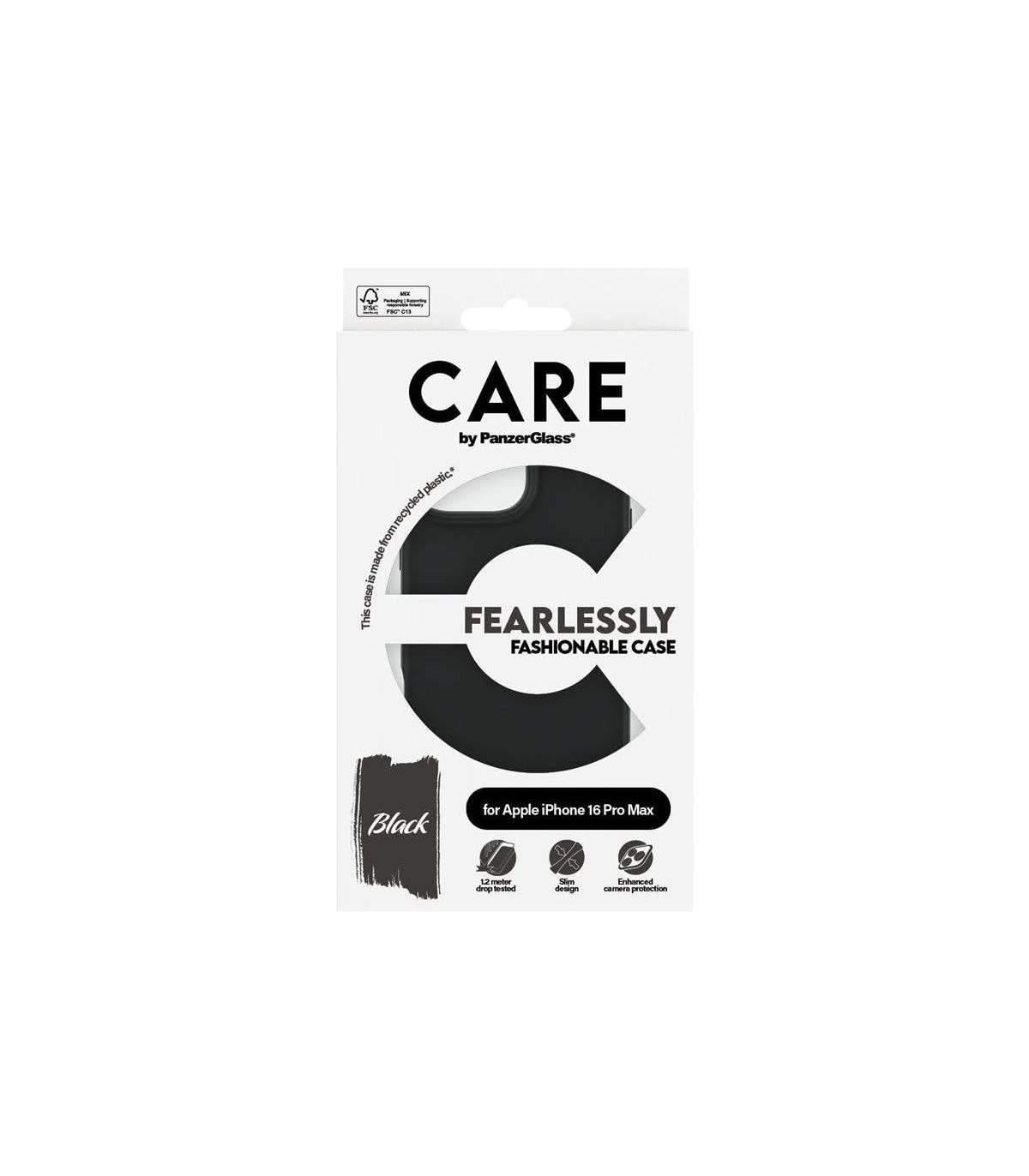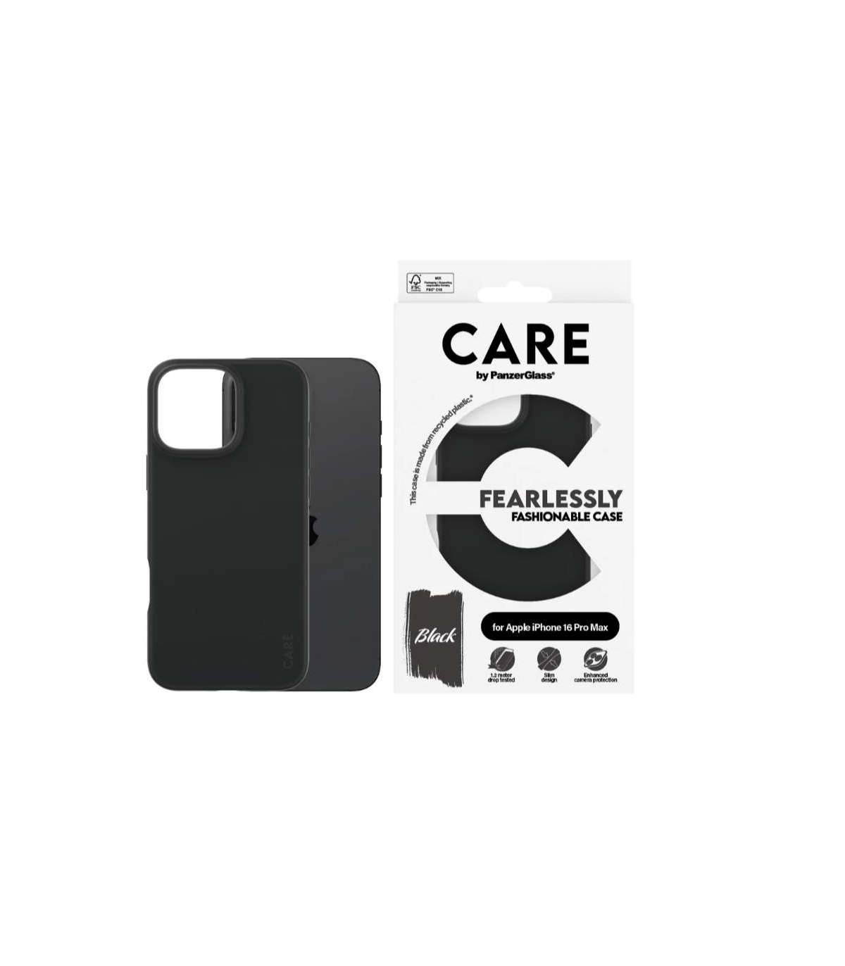 CARE Fashionable Case | Back cover | Apple | iPhone 16 Pro Max | Recycled plastic | Black