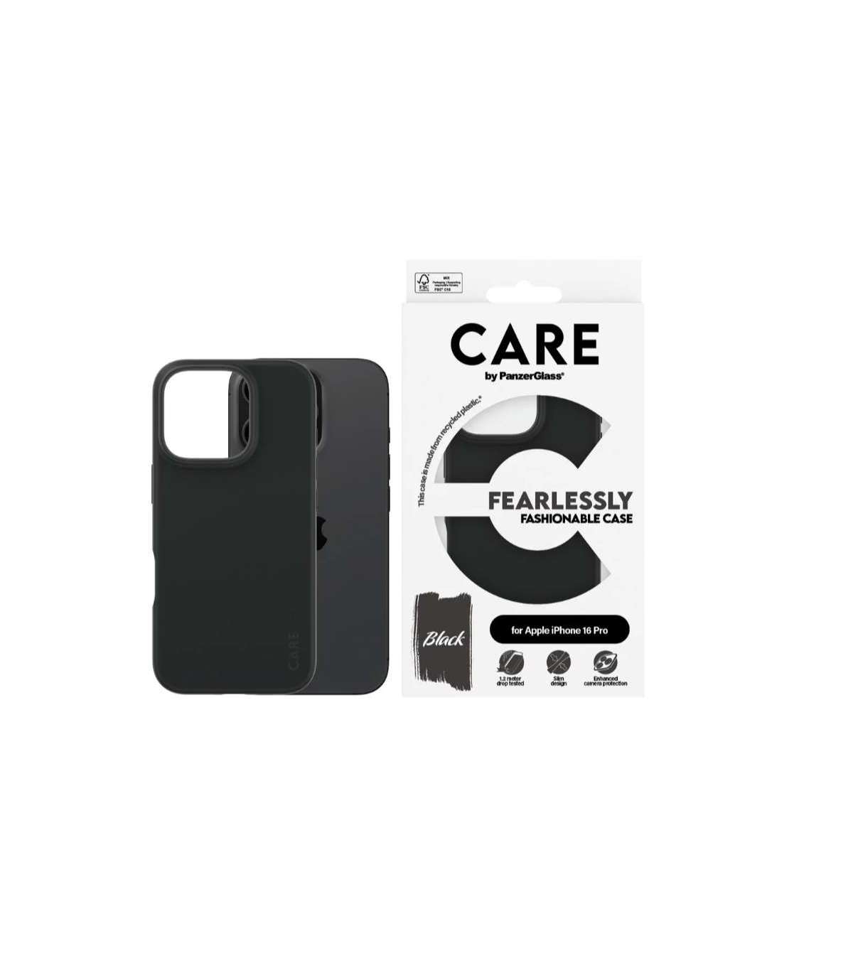 CARE Fashionable Case | Back cover | Apple | iPhone 16 PRO | Recycled plastic | Black